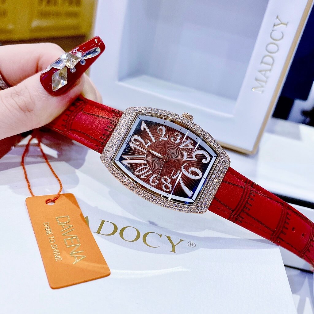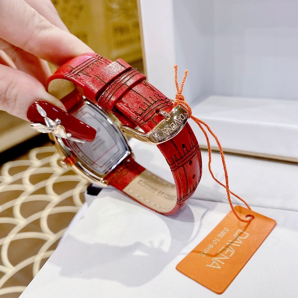 - Đồng Hồ Nữ Davena 31820 Dây Da Đỏ Rose Gold 32mm chính hãng máy Nhật