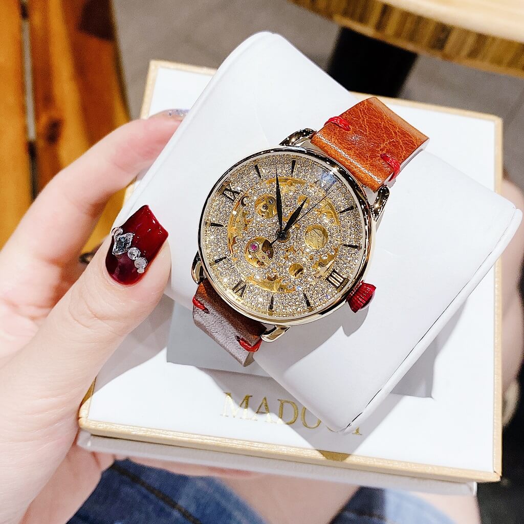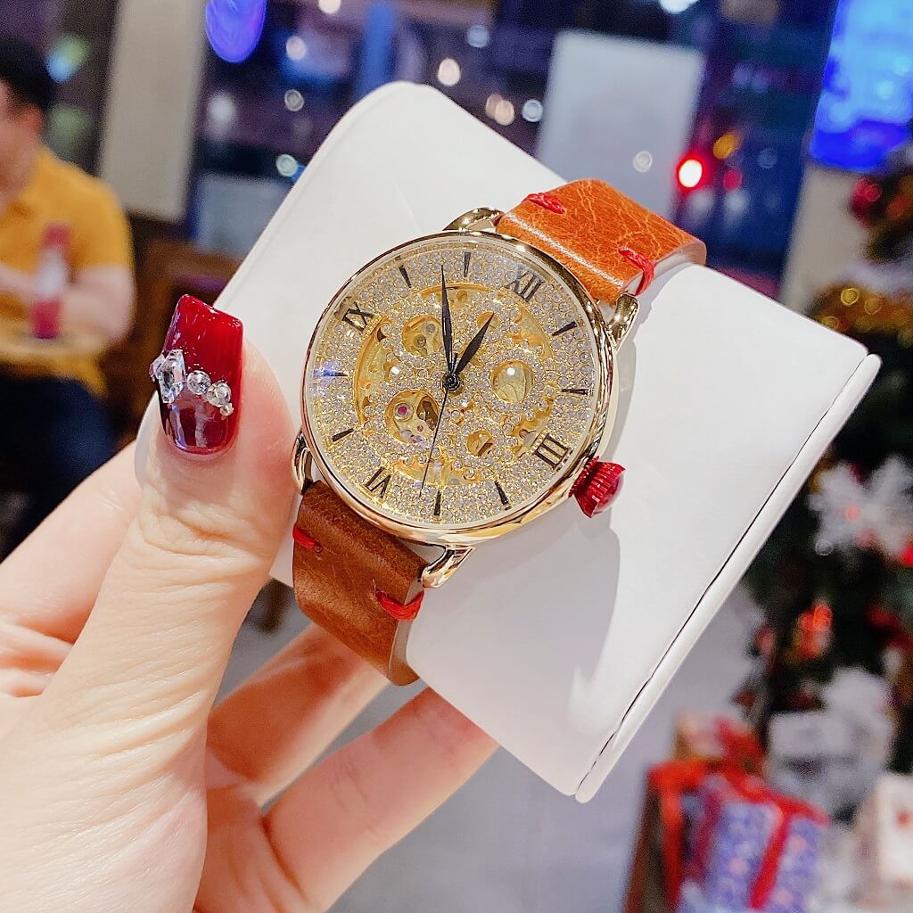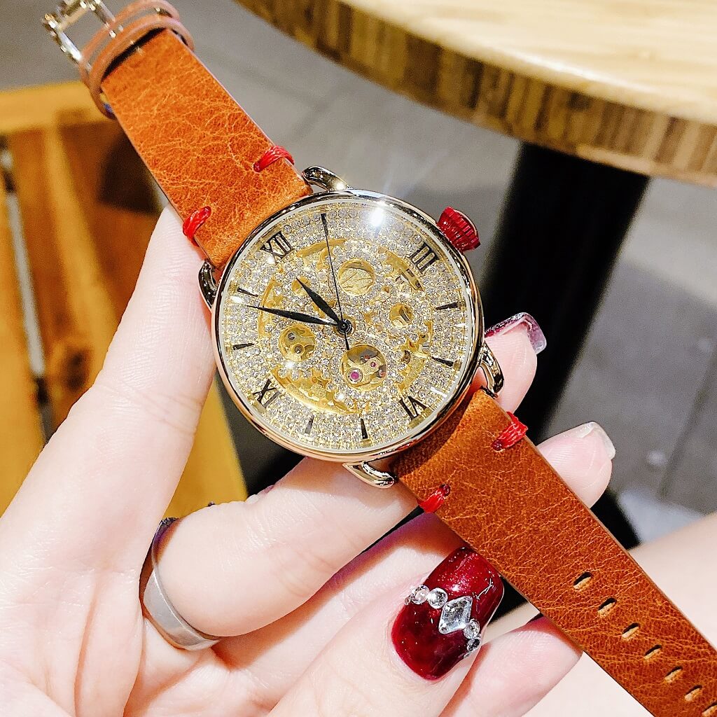 - Đồng Hồ Nữ Davena 31935 Tự Động Dây Da Nâu Rose Gold 38mm chính hãng máy Nhật