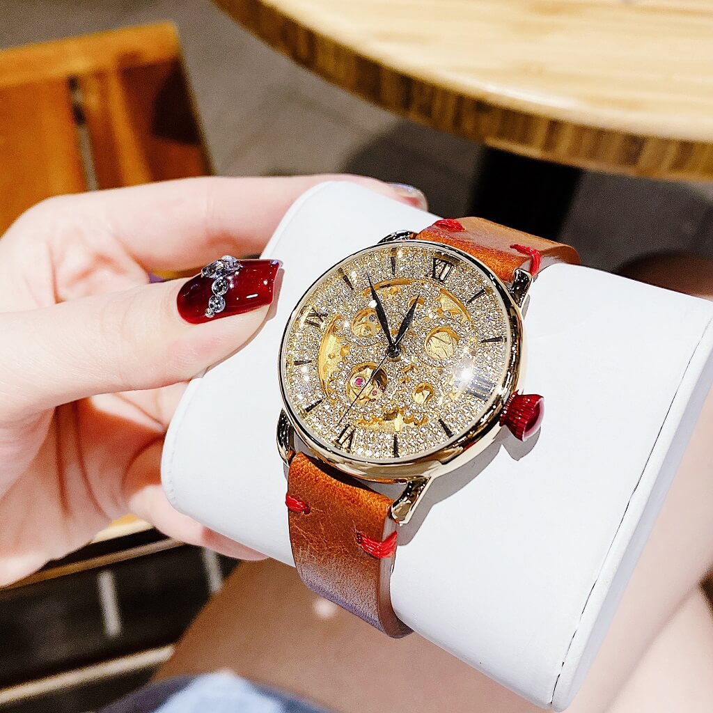 Hình Ảnh Đồng Hồ Nữ Davena 31935 Tự Động Dây Da Nâu Rose Gold 38mm chính hãng
