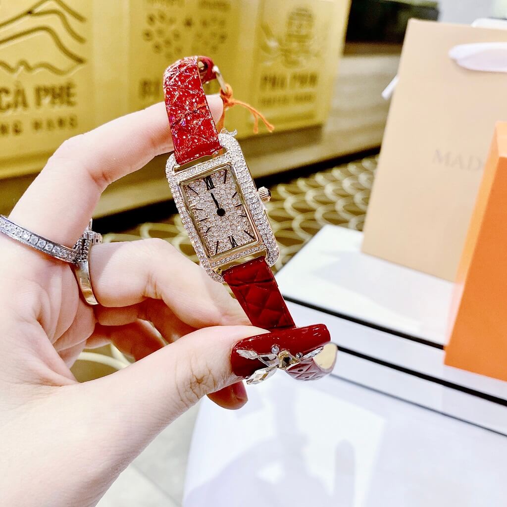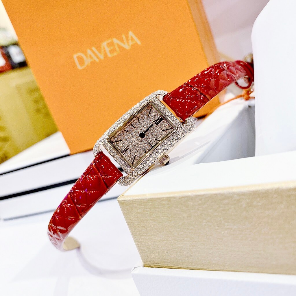 - Đồng Hồ Nữ Davena 31968 Rose Gold Dây Da Đỏ 30mm chính hãng máy Nhật