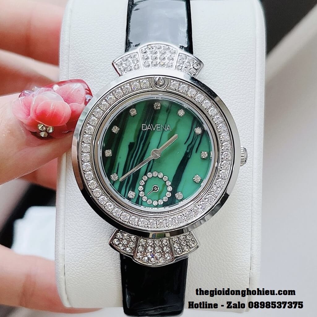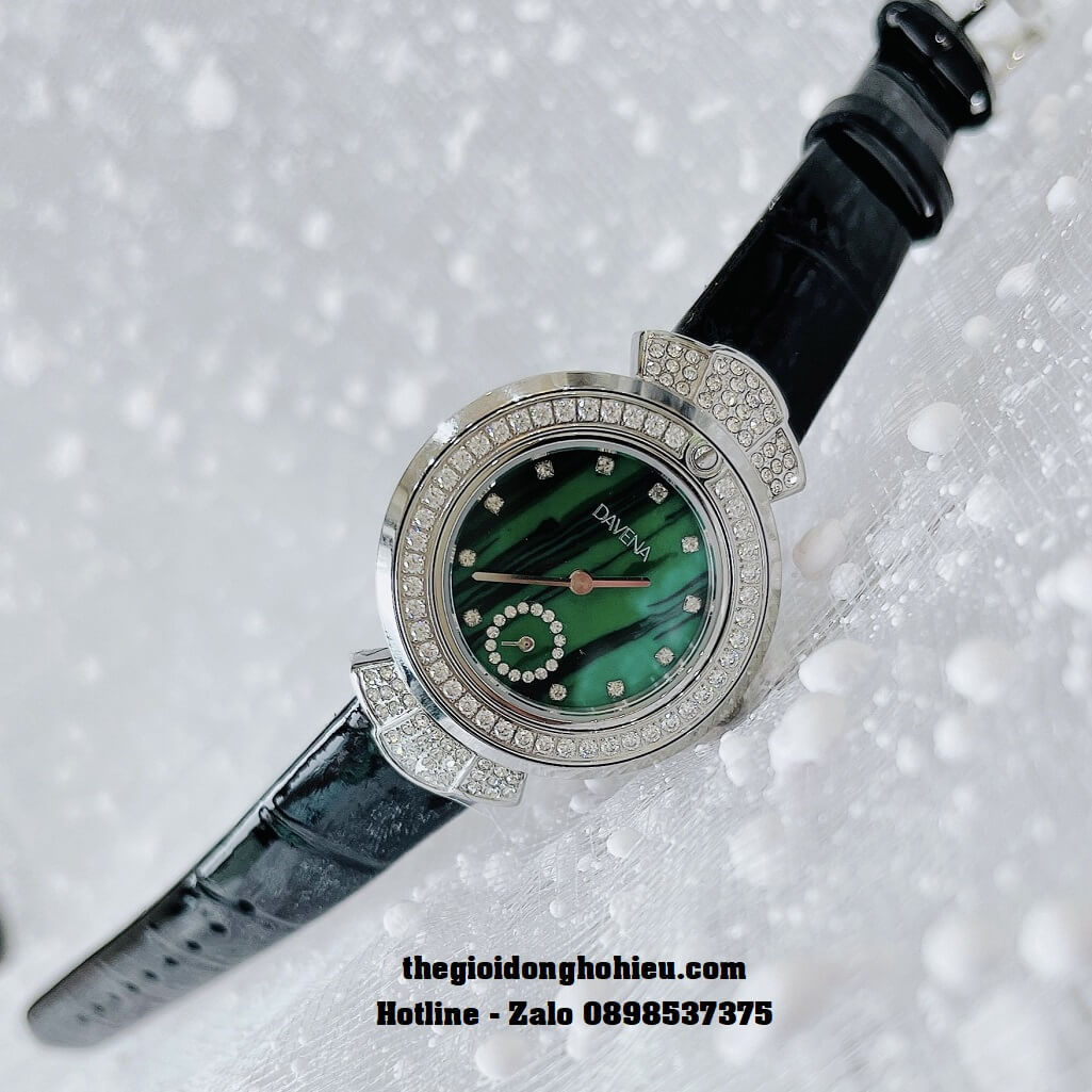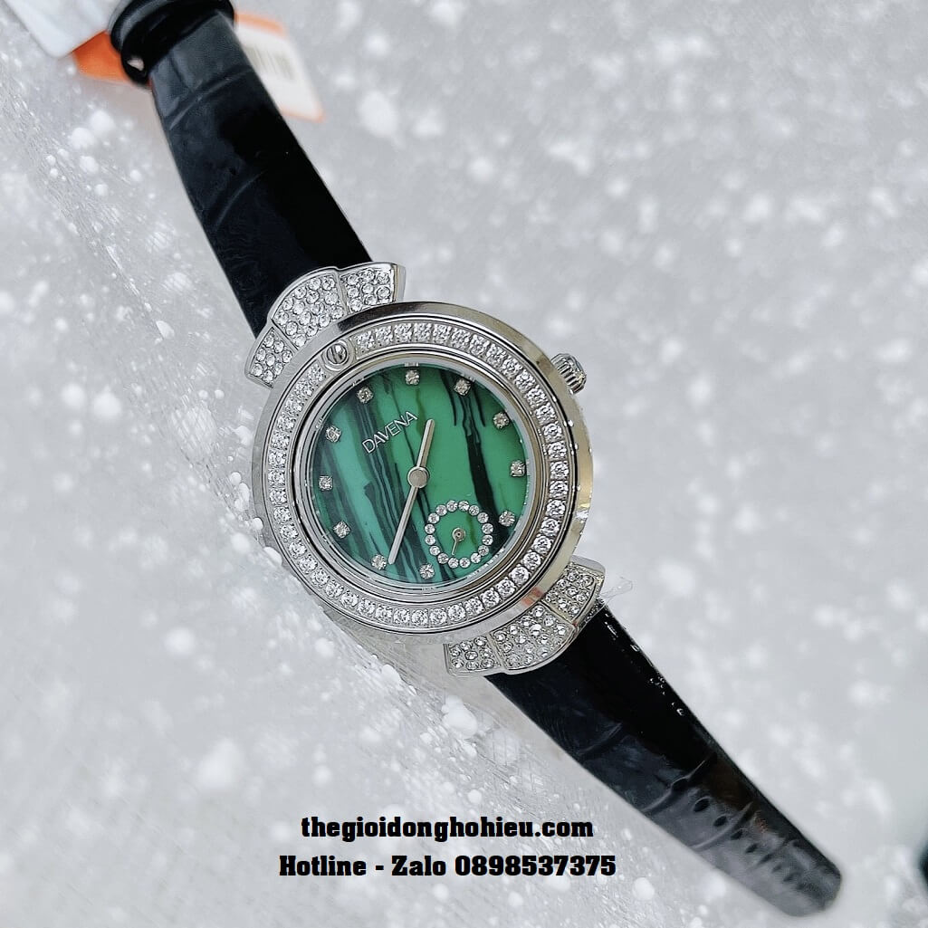 Davena 32008 dây da bóng màu đen mặt xanh lá chính hãng, vỏ màu silver