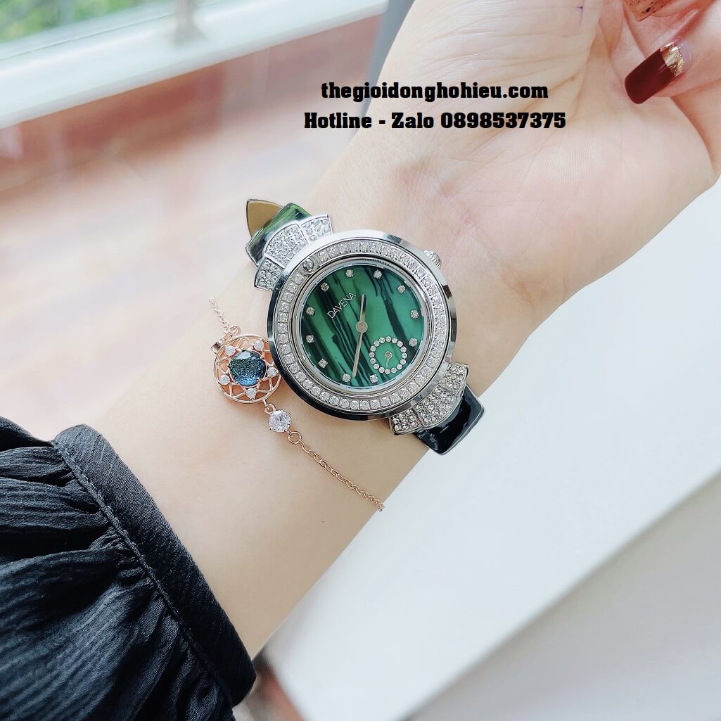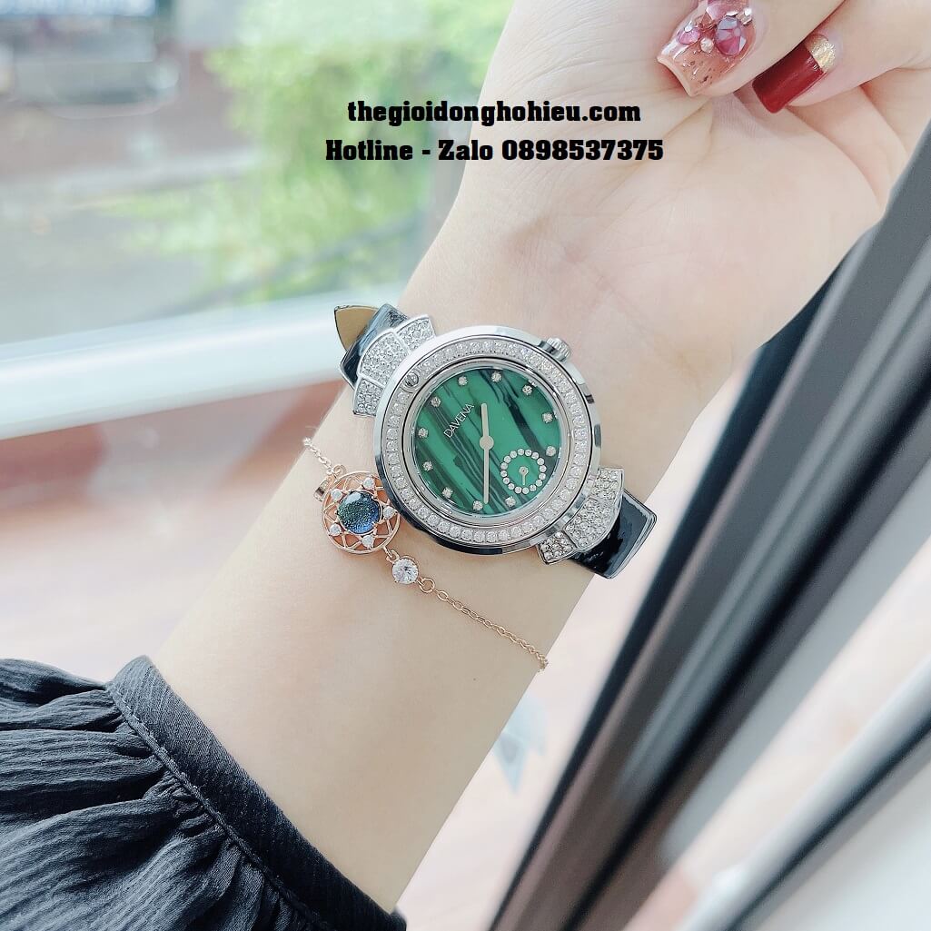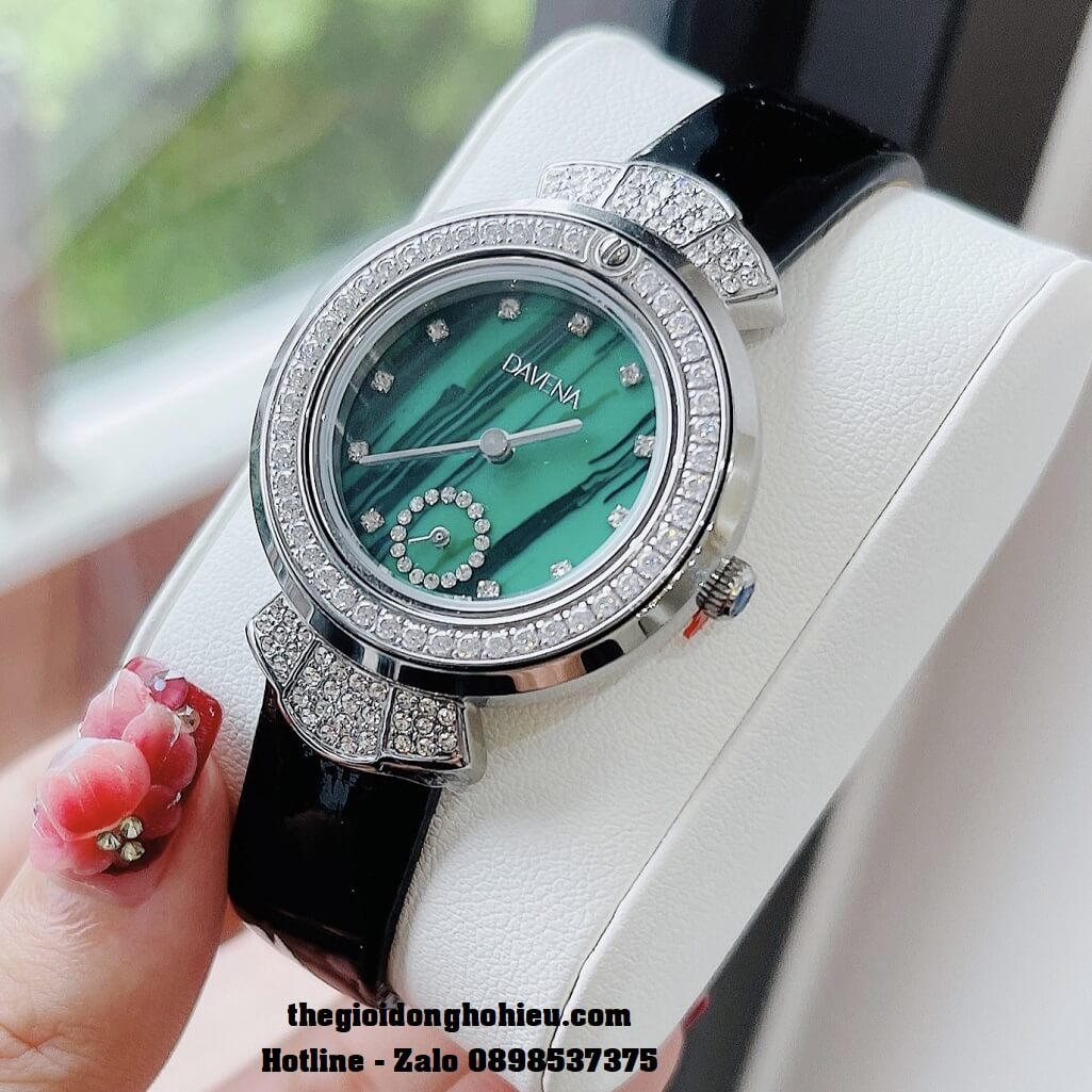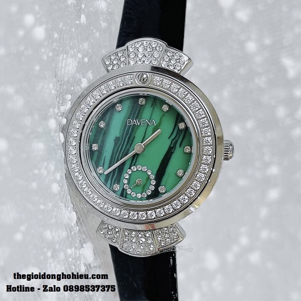 Davena 32008 dây da bóng màu đen mặt xanh lá chính hãng, vỏ màu silver
