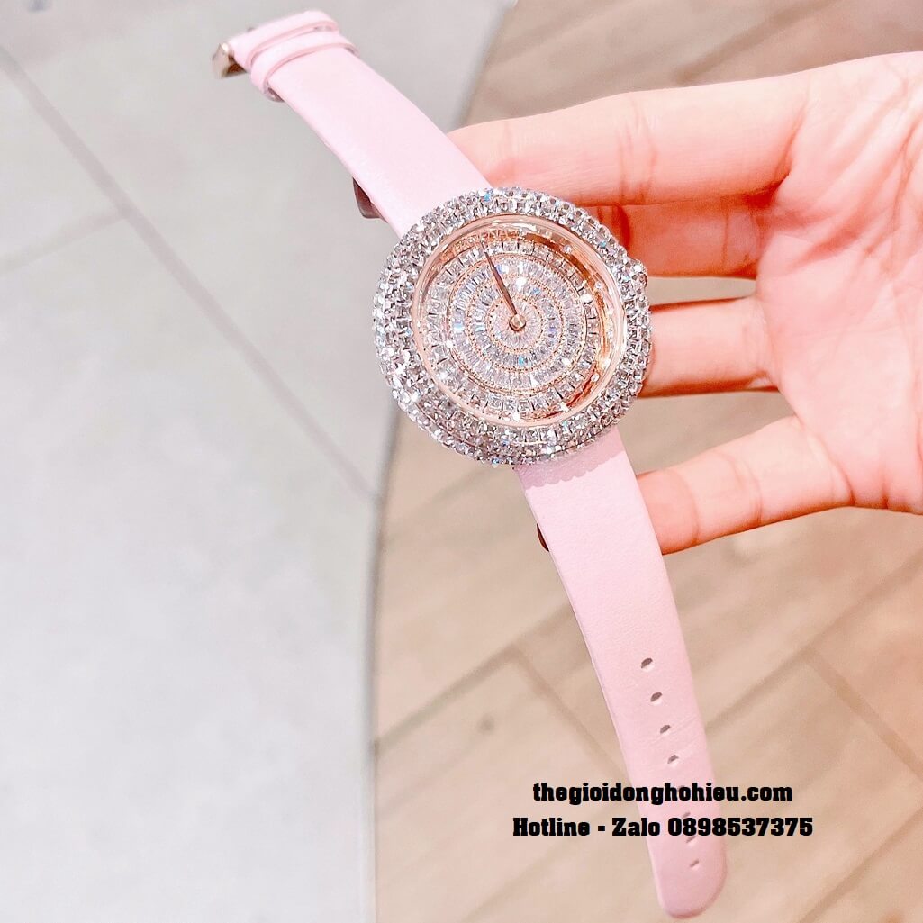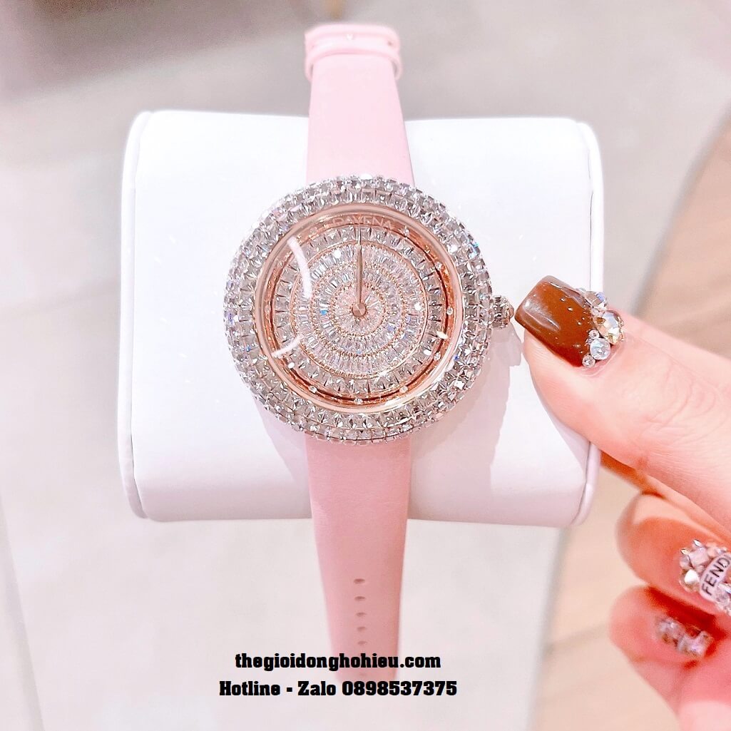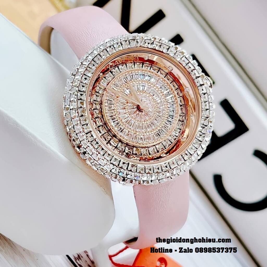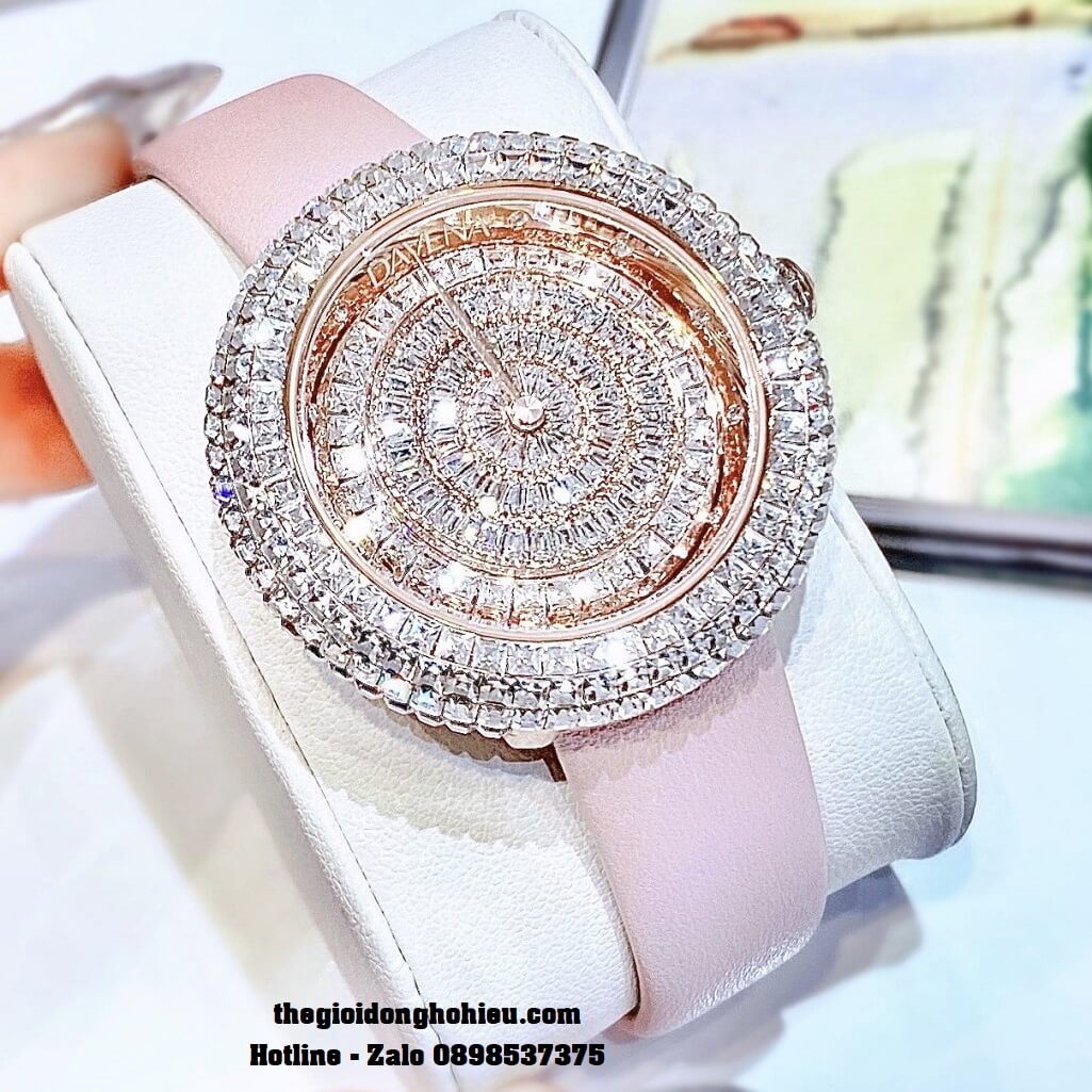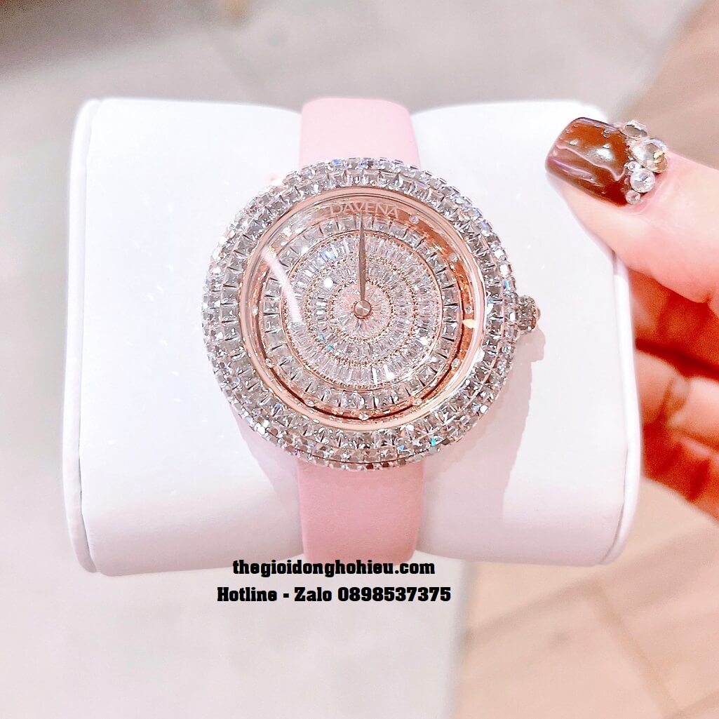 Hình Ảnh Đồng Hồ Nữ Davena 32091 Chính Hãng Dây Da Hồng Vỏ Rose 39mm