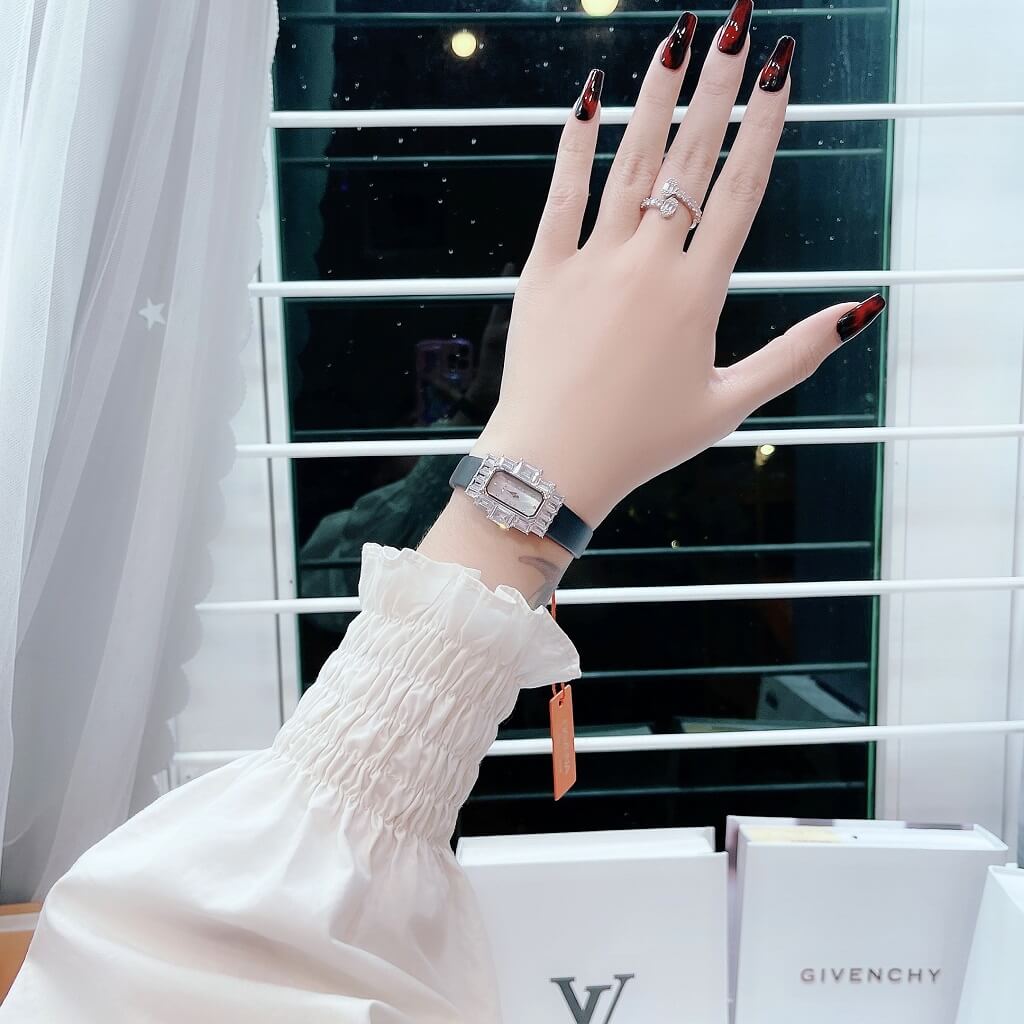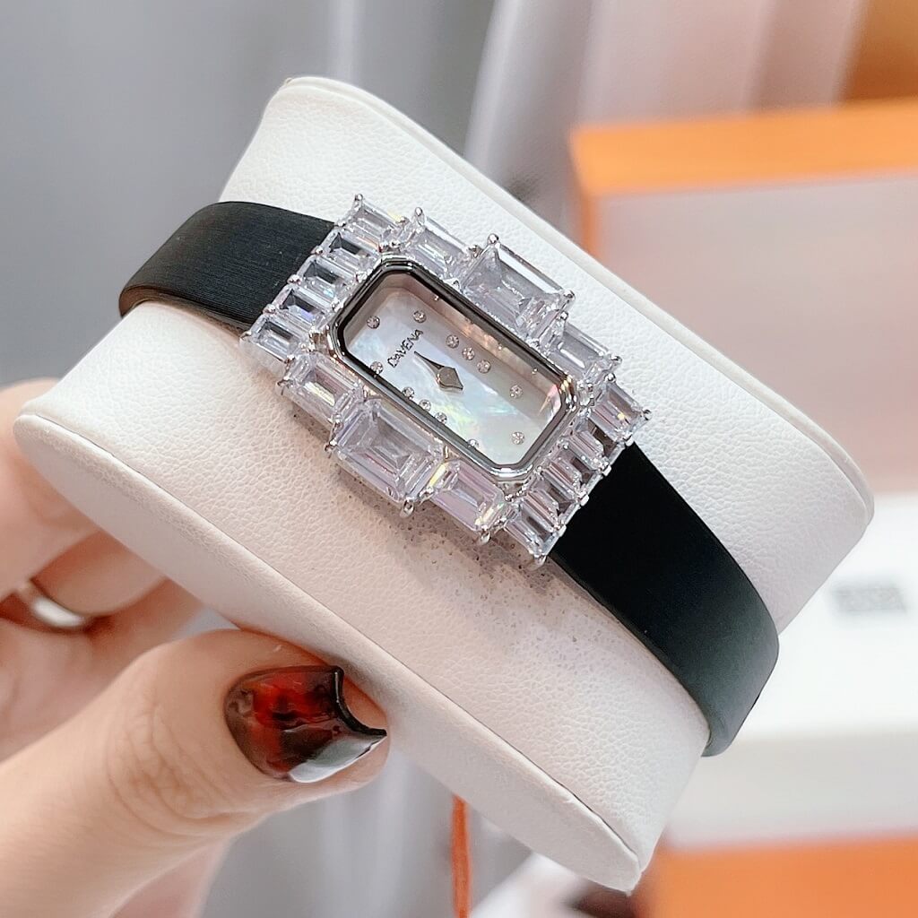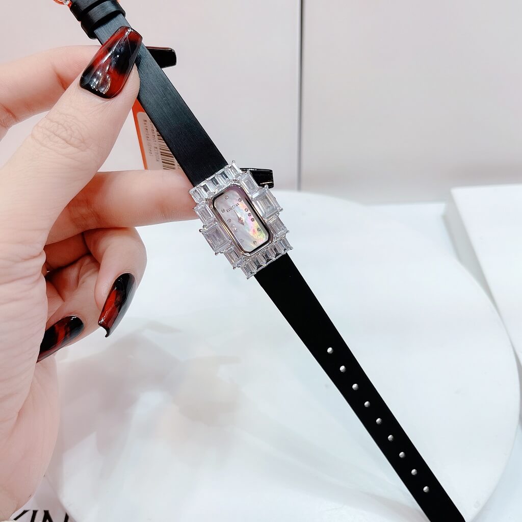 - Phiên bản hoàn hảo bất cứ cô gái nào cũng nên trở thành. Một chiếc size 26mm quá đáng yêu cho mọi cổ tay và cho mọi trang phục. Đá pha lê Swarovski cắt vát từng viên cực kỳ bling bling xuất sắc. Dây satin lụa đen nhỏ xinh ôm tay cực mềm mại.