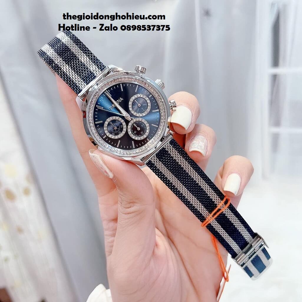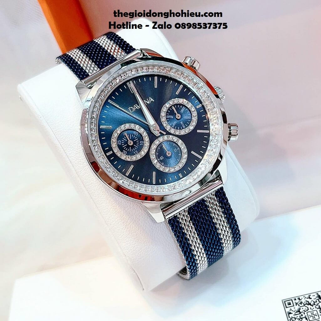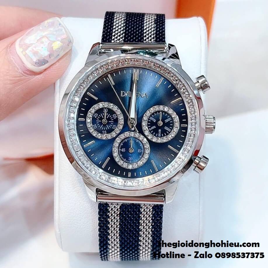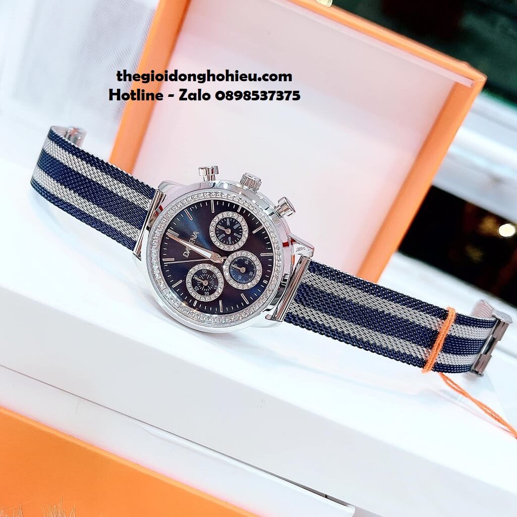 Đồng hồ Davena 61216 chính hãng nữ mặt 6 kim, dây mesh sọc xanh kẻ bạc nhẹ nhàng là một trong những mẫu hot nhất trong bộ sưu tập đồng hồ nữ đẹp và được săn đón hiện nay