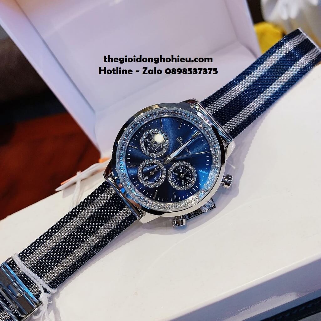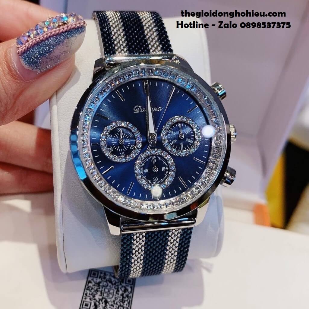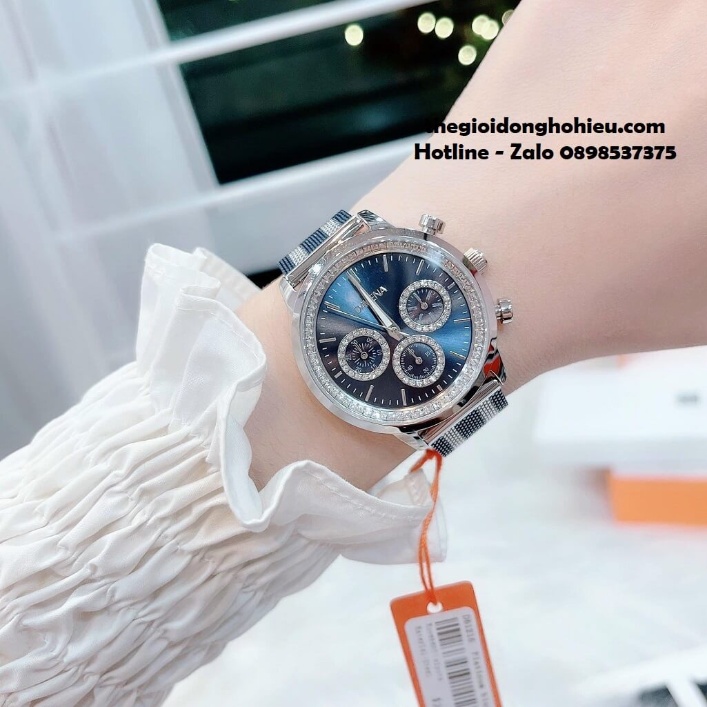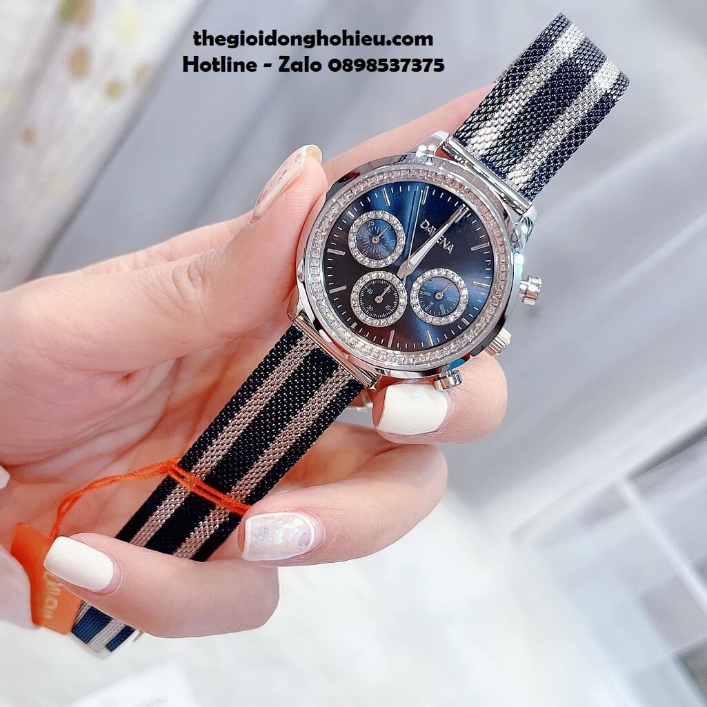 Đồng hồ Davena 61216 chính hãng nữ mặt 6 kim, dây mesh sọc xanh kẻ bạc nhẹ nhàng là một trong những mẫu hot nhất trong bộ sưu tập đồng hồ nữ đẹp và được săn đón hiện nay