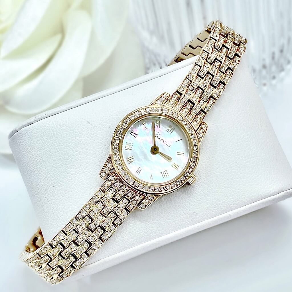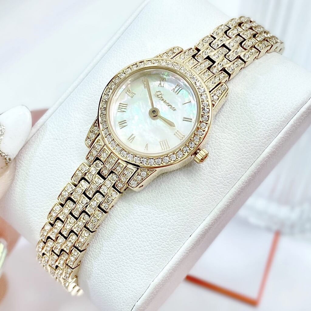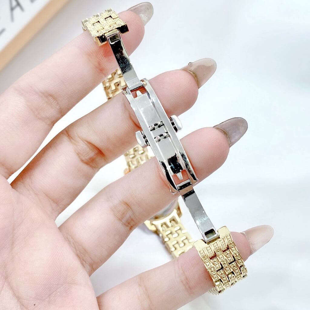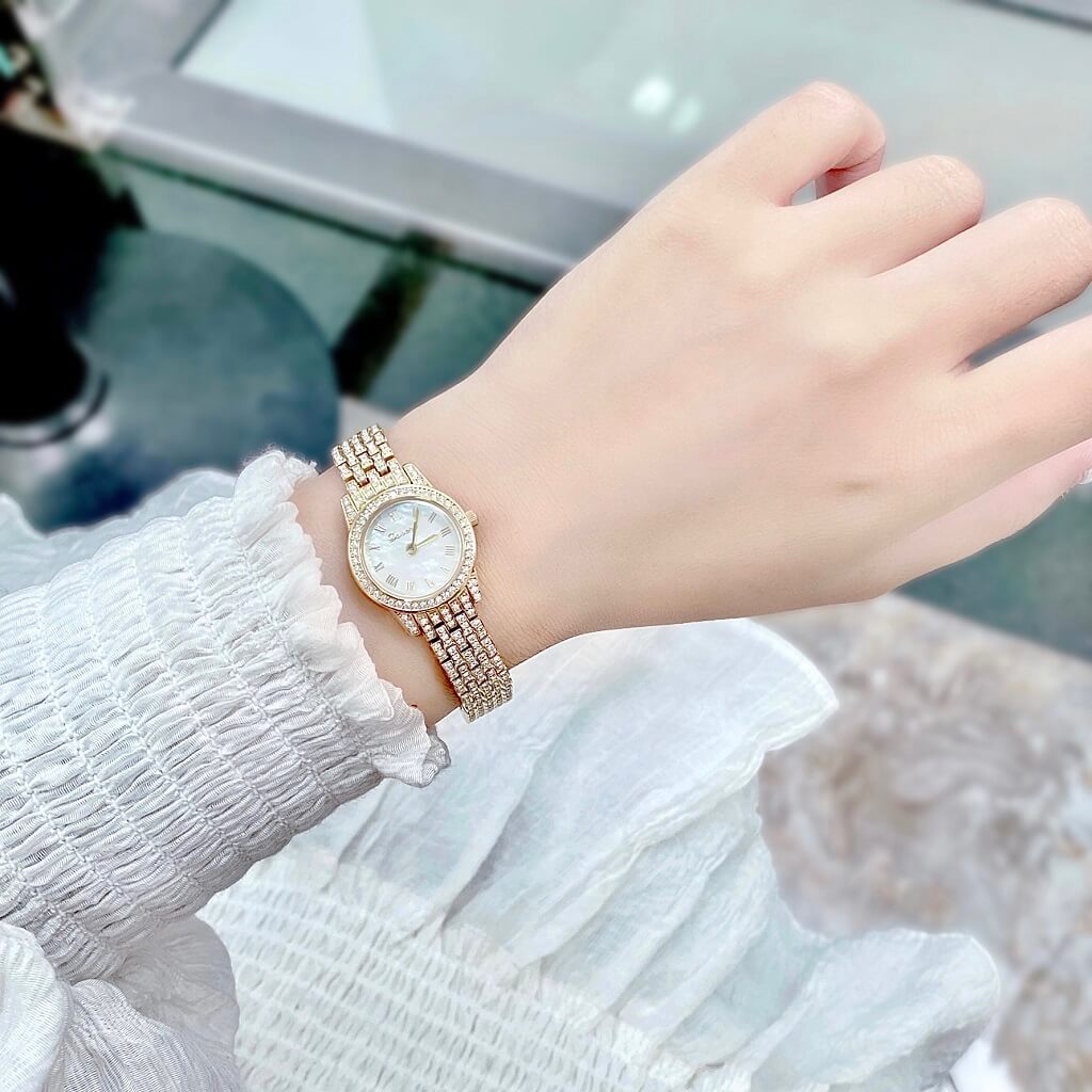 - Thiết kế dây đeo kim loại mảnh, mỏng đính đá swarovski tinh tế, tỉ mỉ xung quanh mặt đồng hồ đến từng chi tiết , chiều rộng dây đeo nhỏ nhỏ xinh xinh siêu tôn lên đường nét cổ tay của từng bạn gái chúng mình