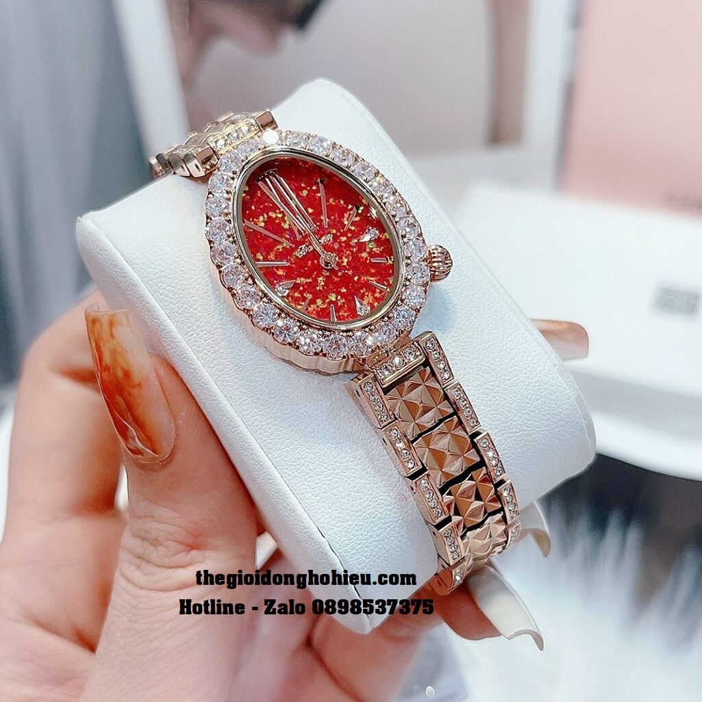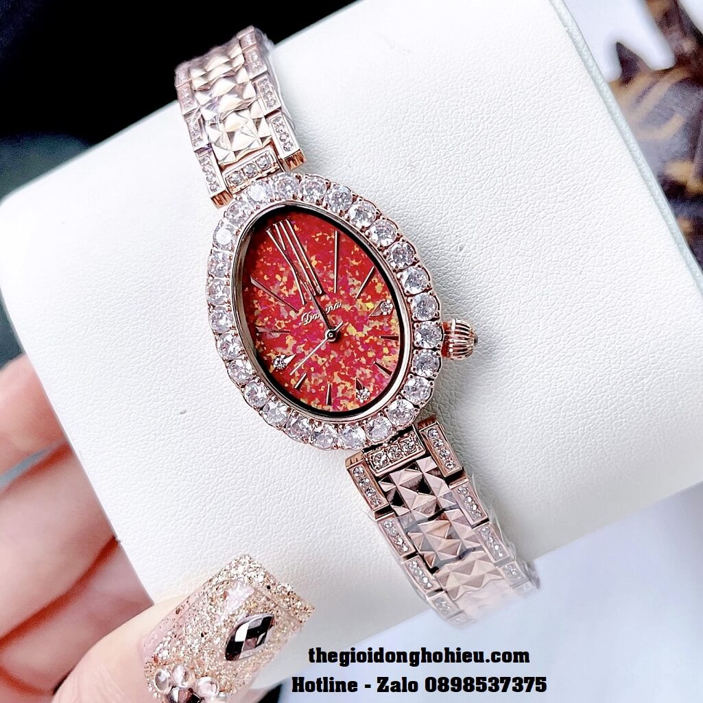 Đồng Hồ Nữ Davena 61695 Chính Hãng Oval Rose Mặt Đỏ 32mm