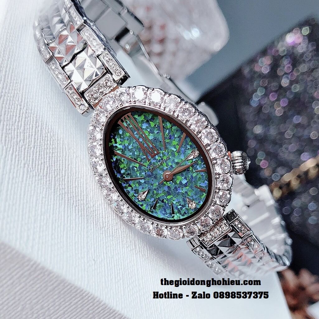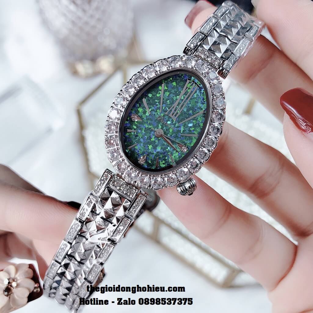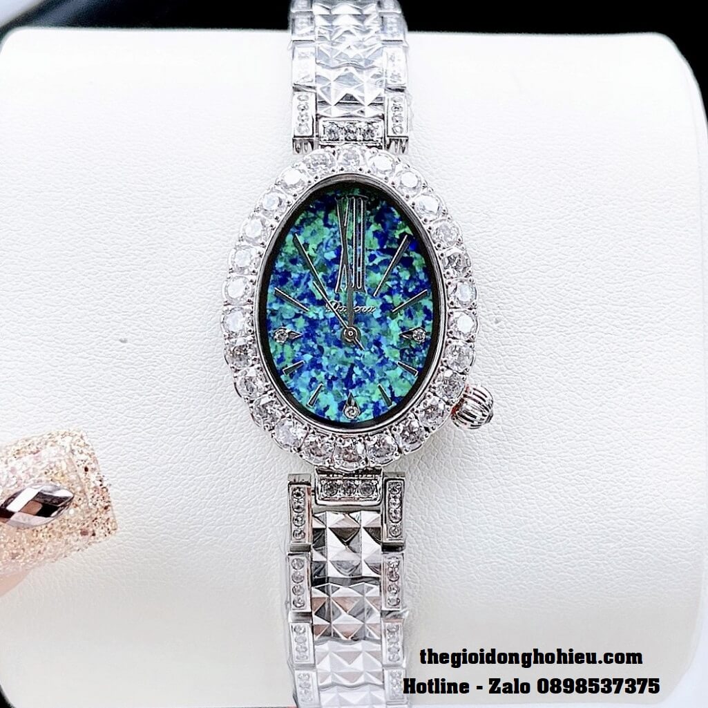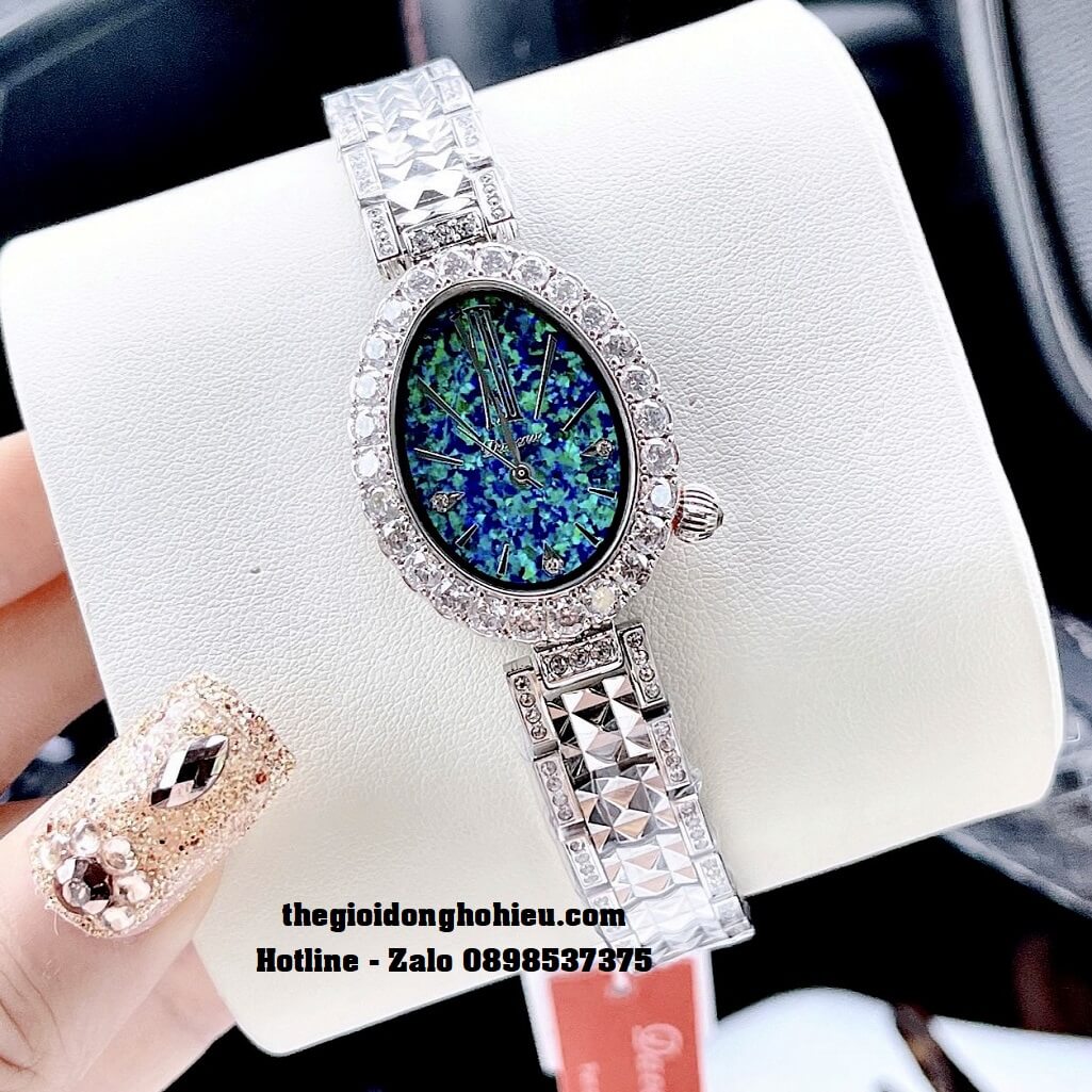 Đồng Hồ Nữ Davena 61695 Chính Hãng Oval Silver Mặt Xanh 32mm