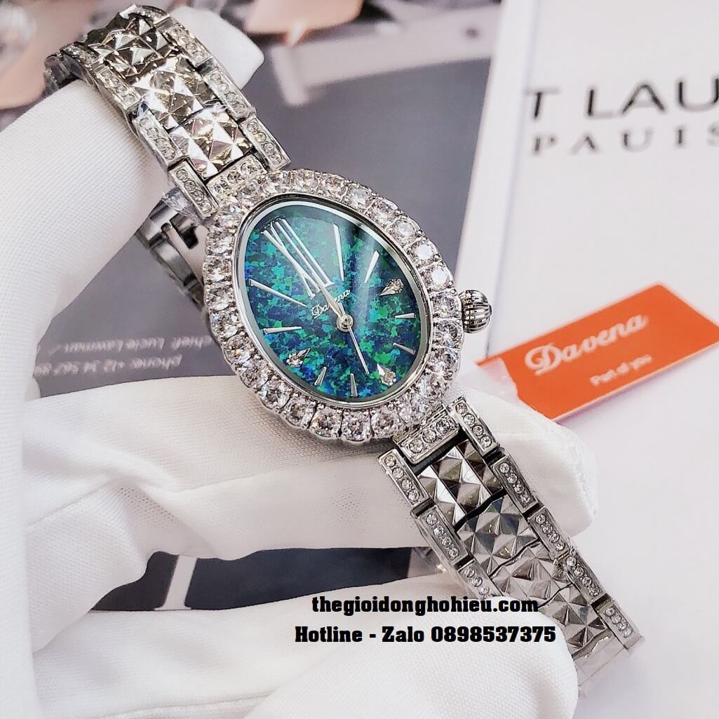 Hình ảnh Đồng Hồ Nữ Davena 61695 Chính Hãng Oval Silver Mặt Xanh 32mm