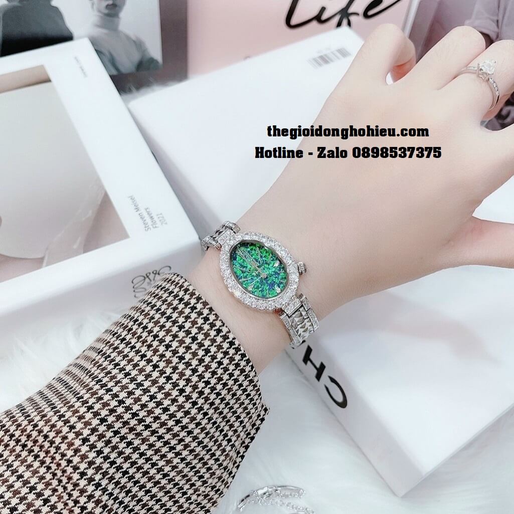 Davena 61695 với thiết kế mặt xanh khổng tước mặt đá tự nhiên kết hợp trên nền silver quá nổi bật