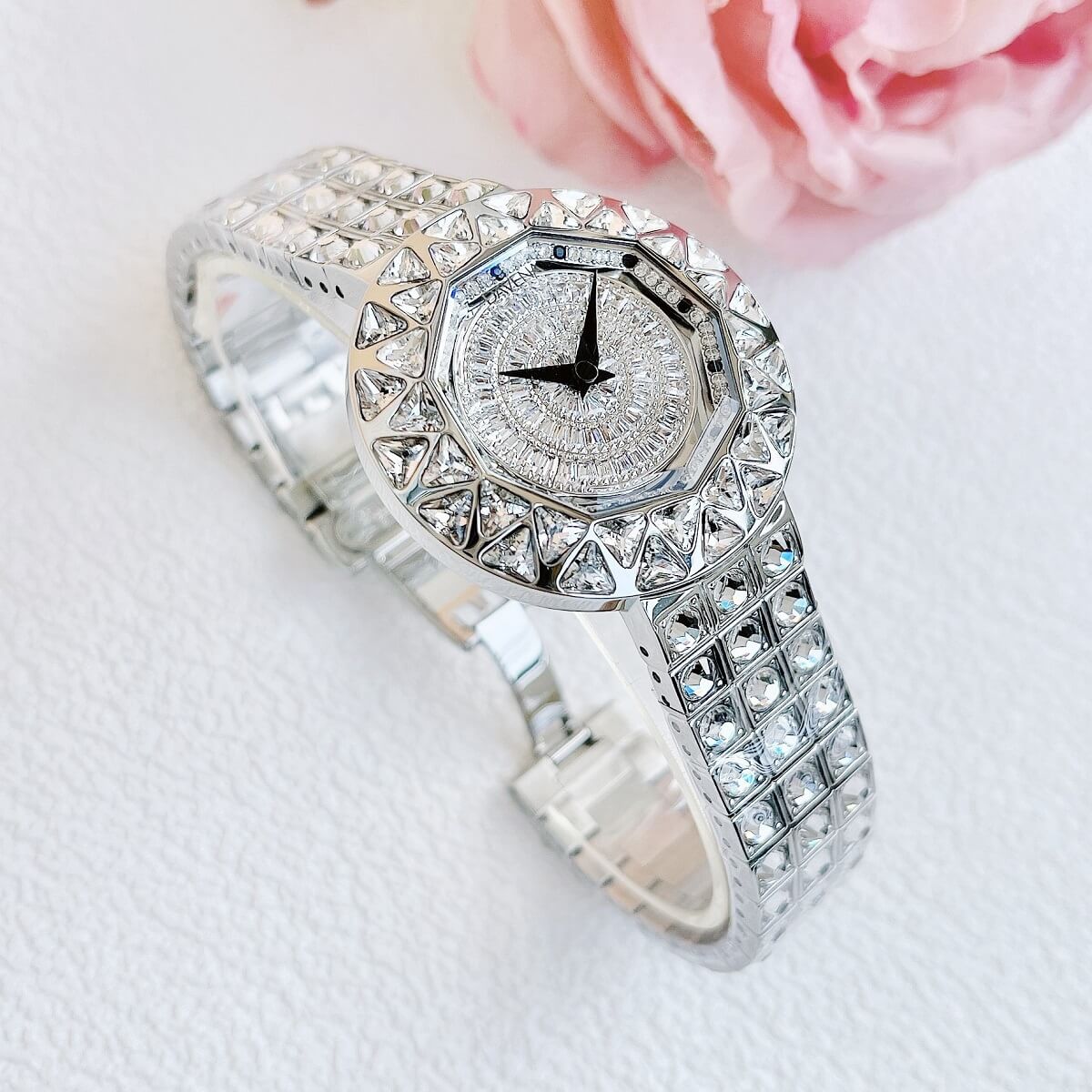 - Chất liệu vỏ: Thép không gỉ 316L, đá Swarovski