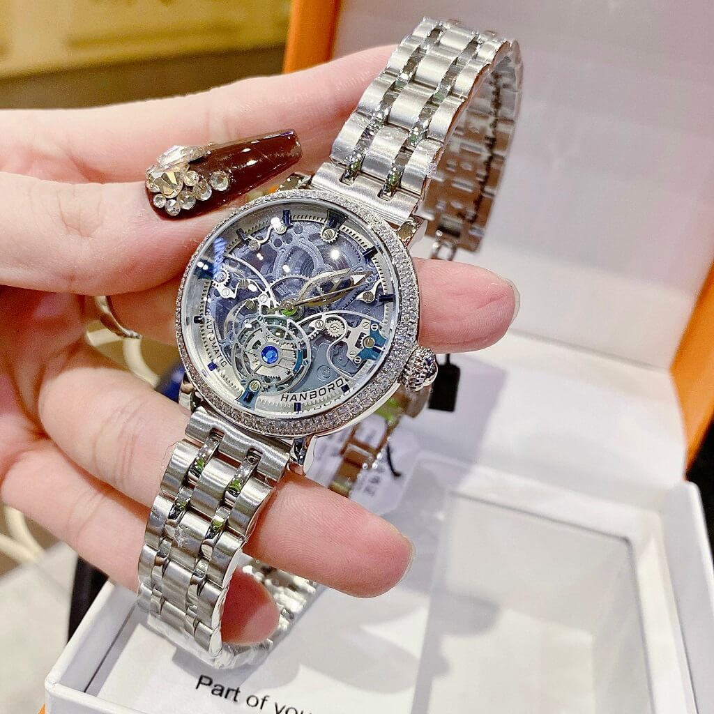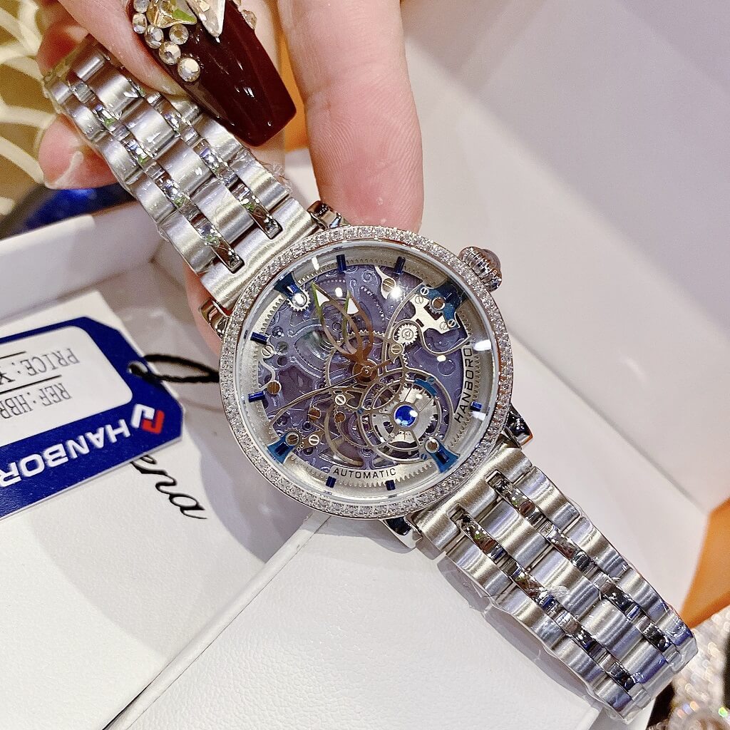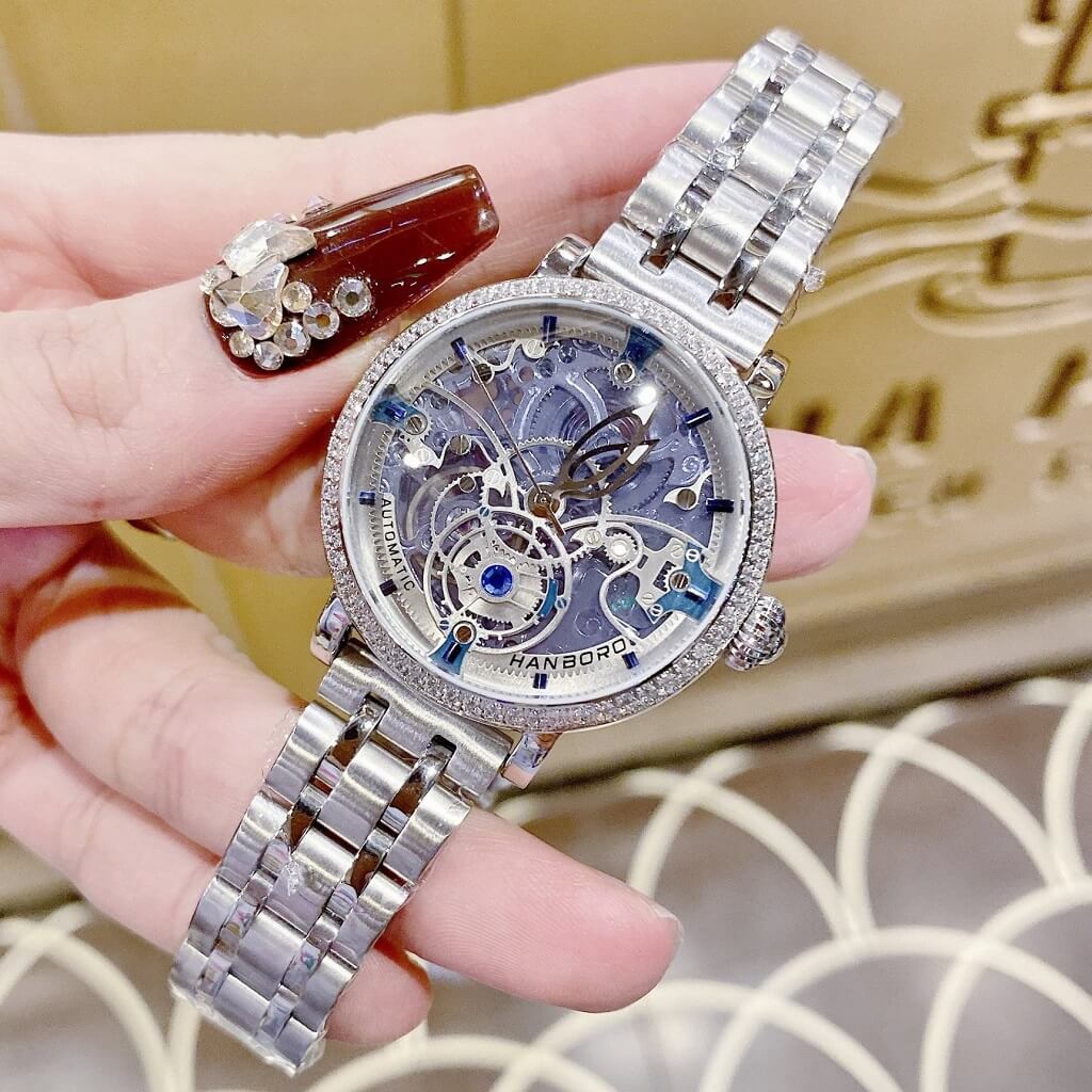 Hình Ảnh Đồng Hồ Nữ Hanboro Automatic (Tự Động) Lộ Máy Silver 36mm Chính Hãng