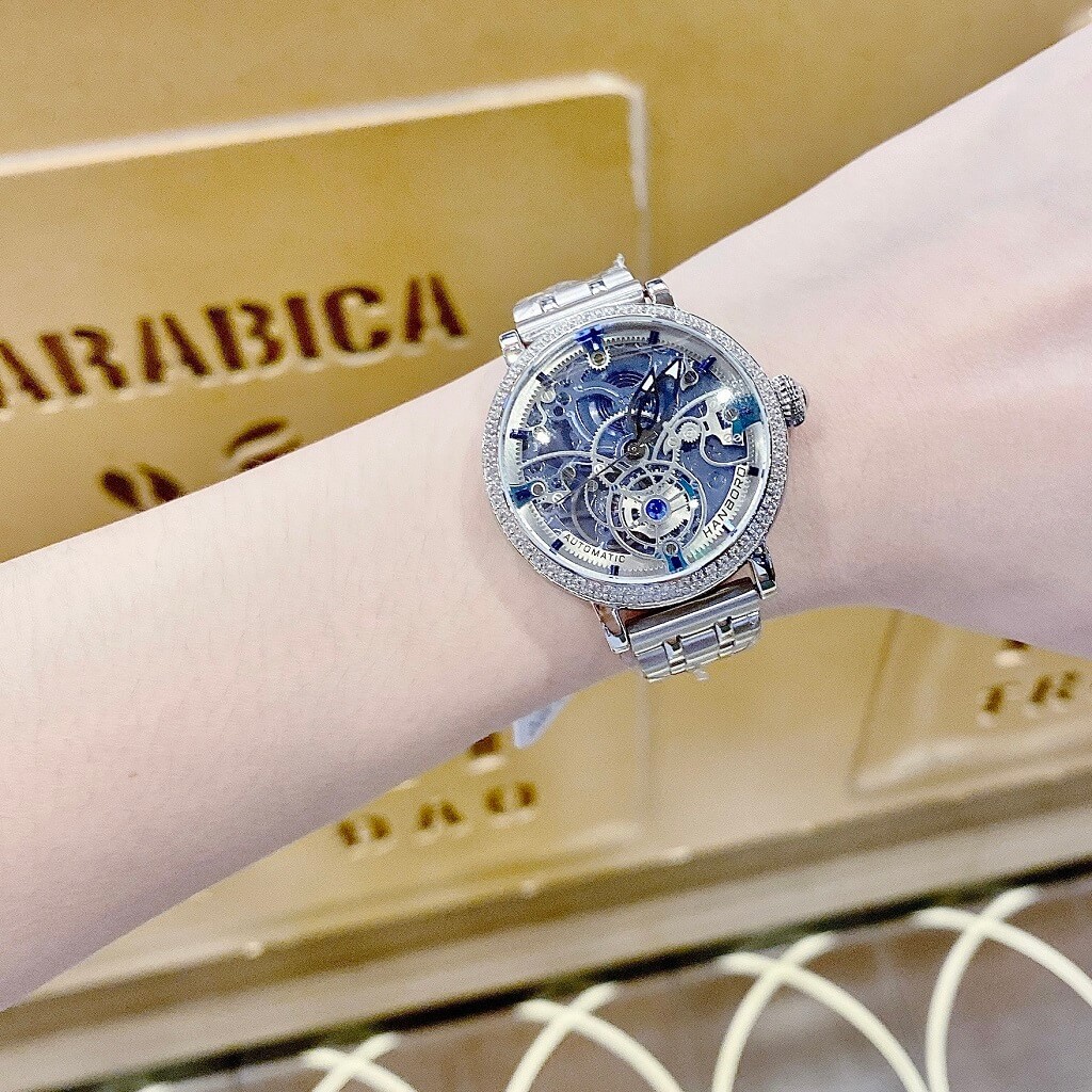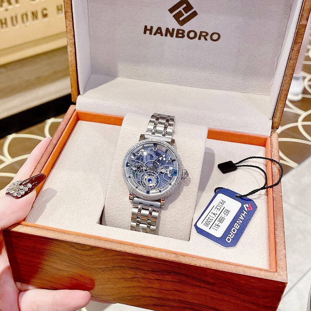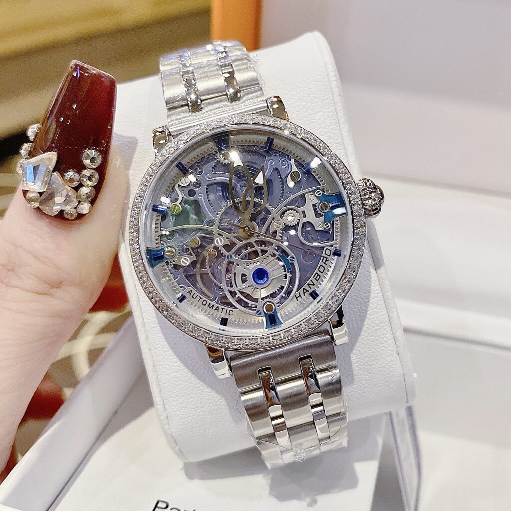 Hình Ảnh Đồng Hồ Nữ Hanboro Automatic (Tự Động) Lộ Máy Silver 36mm Chính Hãng