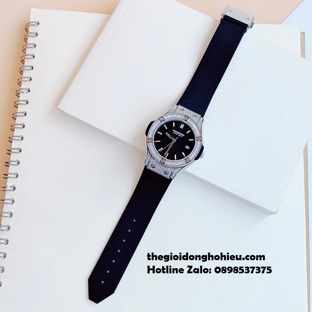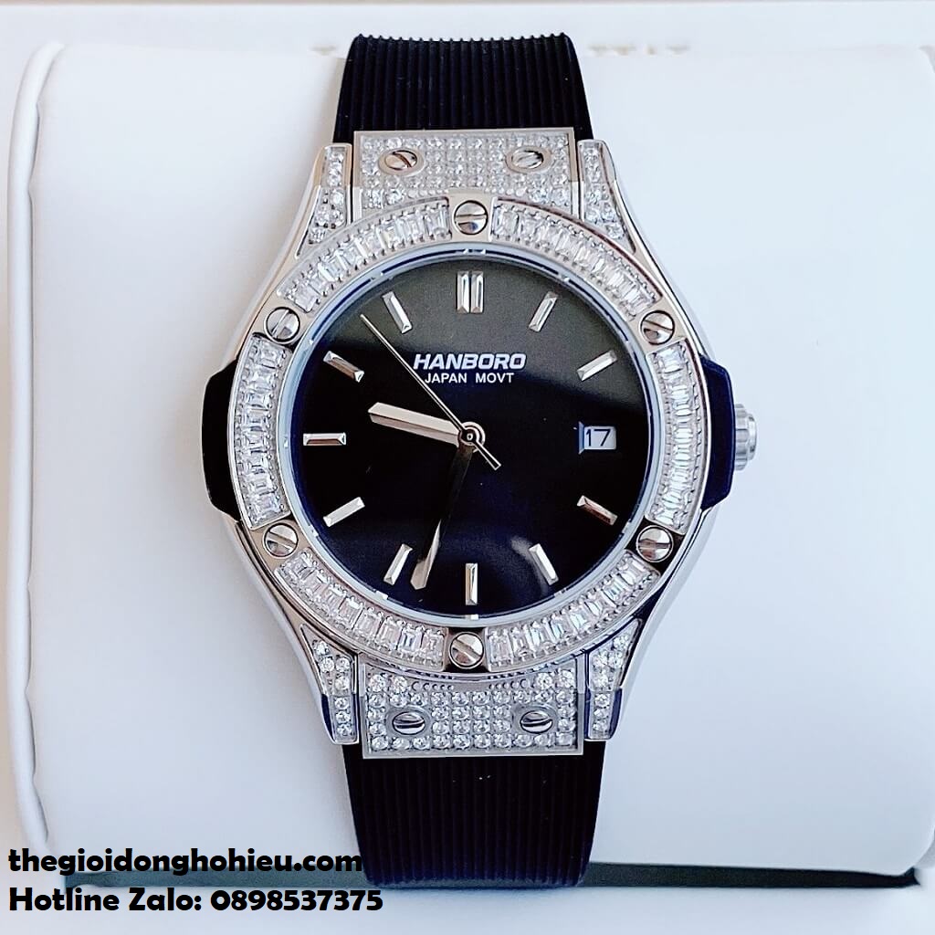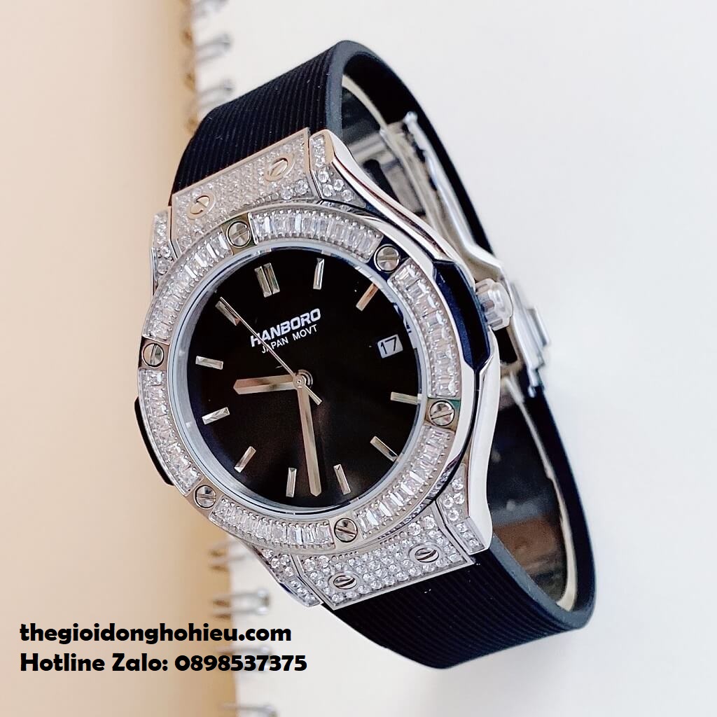 Hình Ảnh Đồng Hồ Nữ Hanboro Dây Silicone Đen Vỏ Silver 33mm