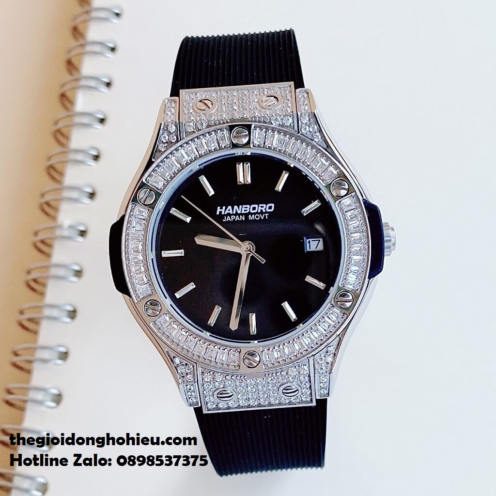 Thông số Đồng Hồ Nữ Hanboro Dây Silicone Đen Vỏ Silver 33mm Chính Hãng