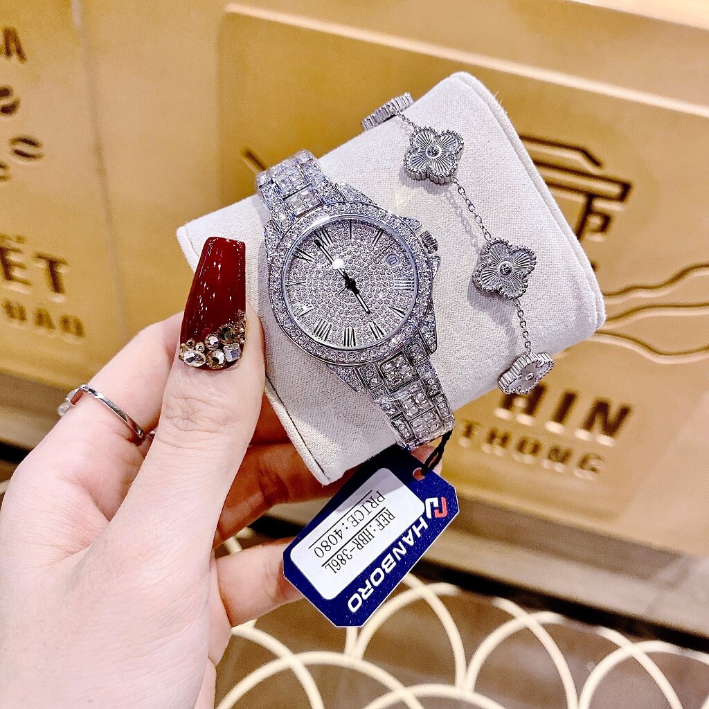 Hình ảnh thực tế của sản phẩm Đồng Hồ Nữ Hanboro HBR-386L Dây Inox Silver 32mm