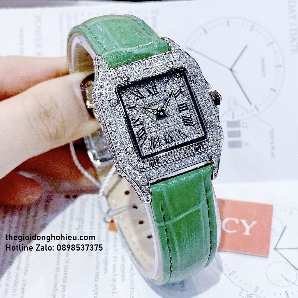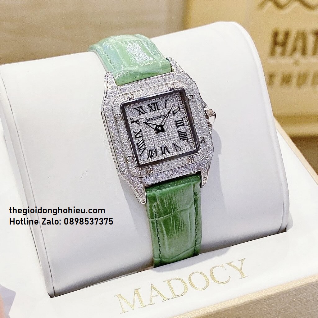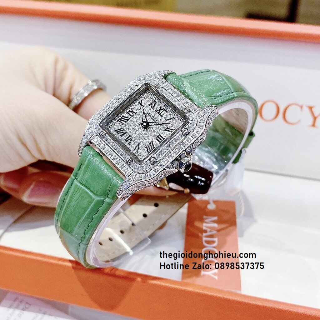 Đồng Hồ Nữ Madocy M81678 Dây Da Xanh Silver 28mm chính hãng