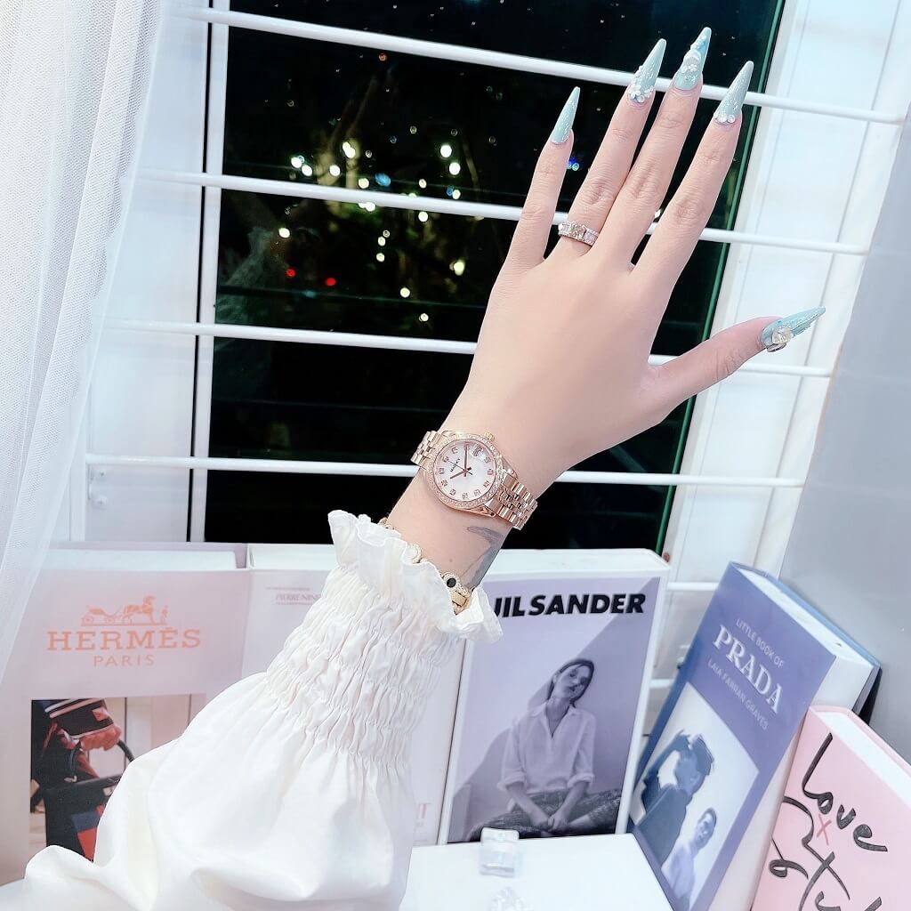 - Chất liệu vỏ: Thép không rỉ, đá Swarovski