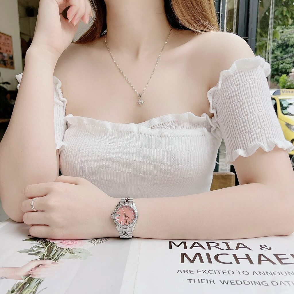 - Chất liệu vỏ: Thép không rỉ, đá Swarovski