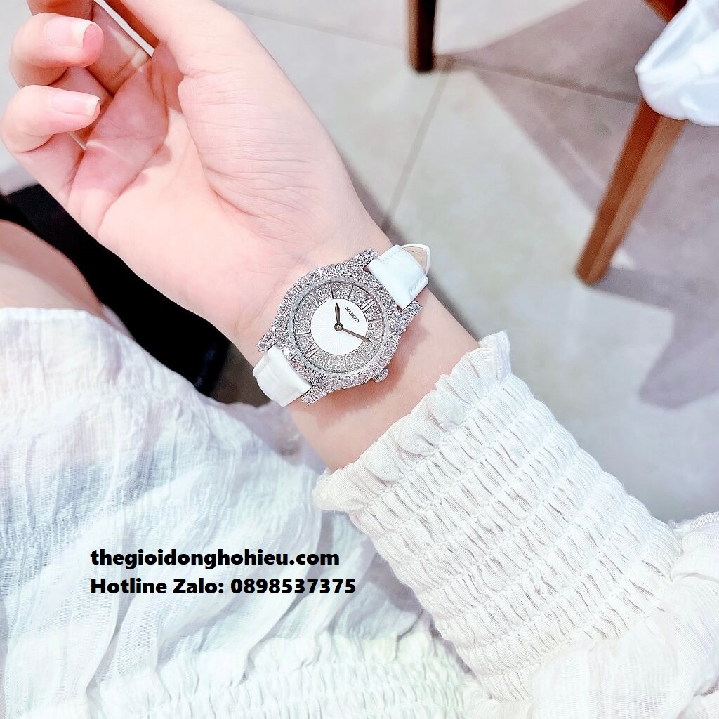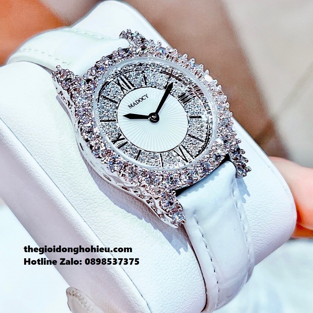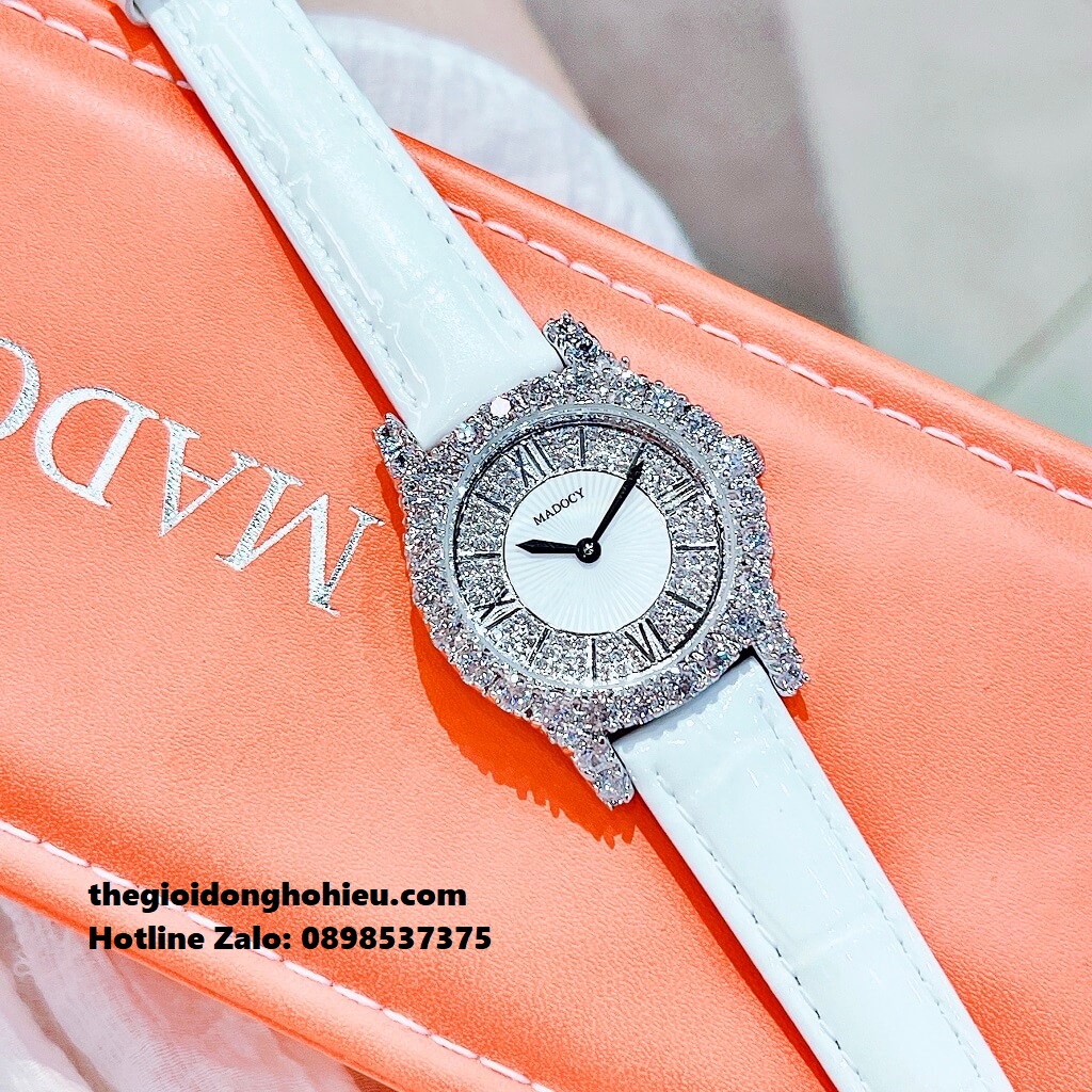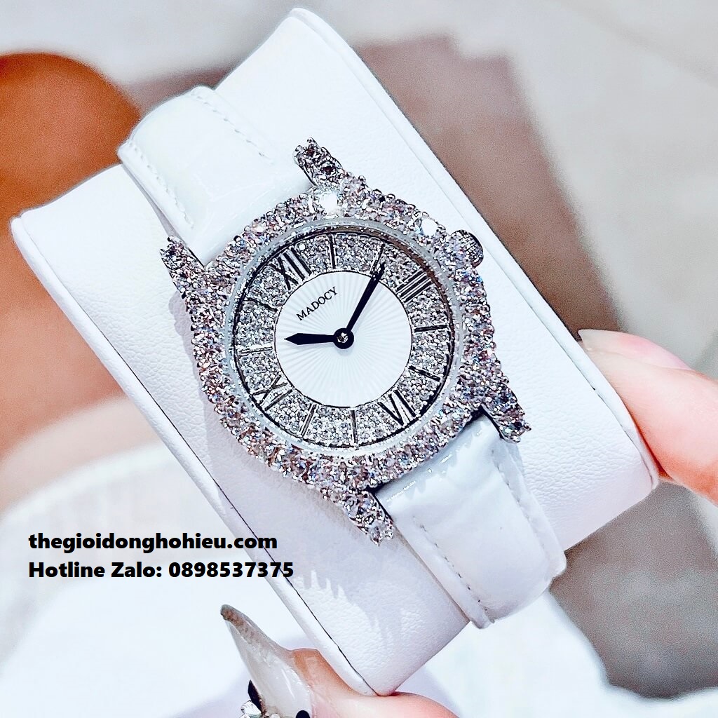 - Đồng Hồ Nữ Madocy M81699 Dây Da Trắng Silver 31mm chính hãng. Sáng lóa như những viên kim cương tựa Chopard tiền tỷ