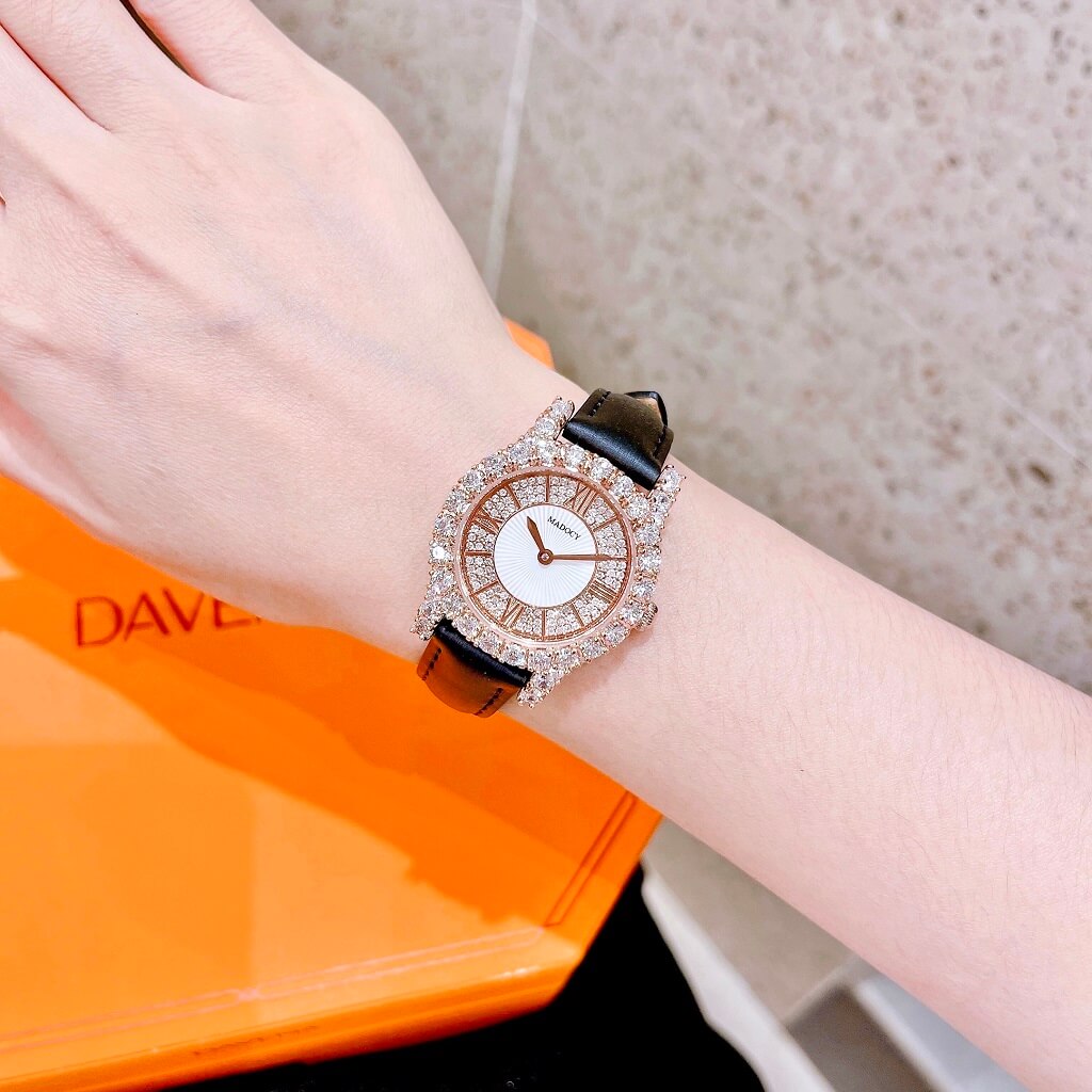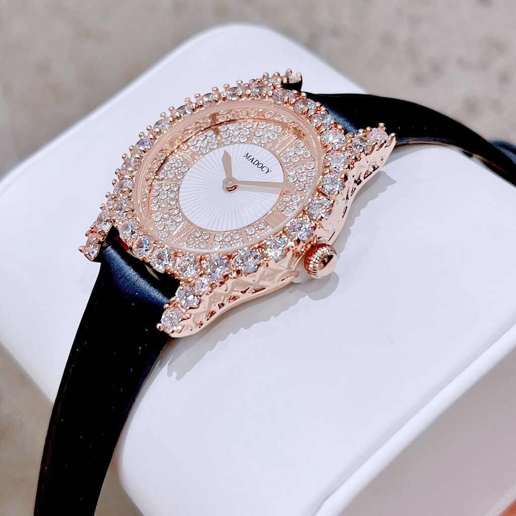 Đồng Hồ Nữ Madocy M81699 Dây Da Xanh Than Đen Rose Gold 31mm chính hãng. Sáng lóa như những viên kim cương tựa Chopard tiền tỷ