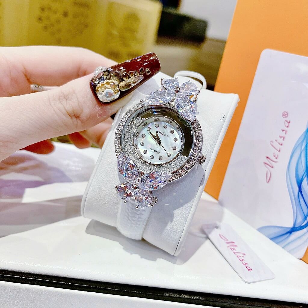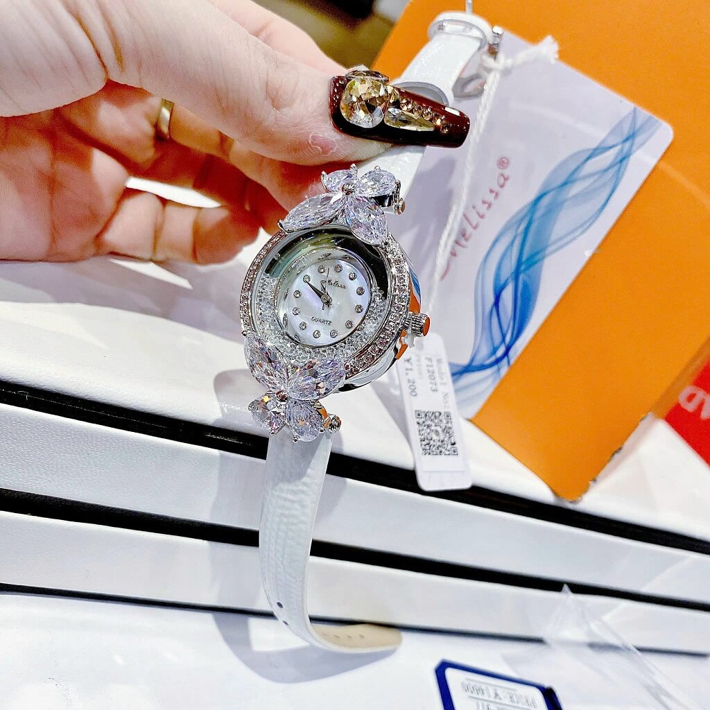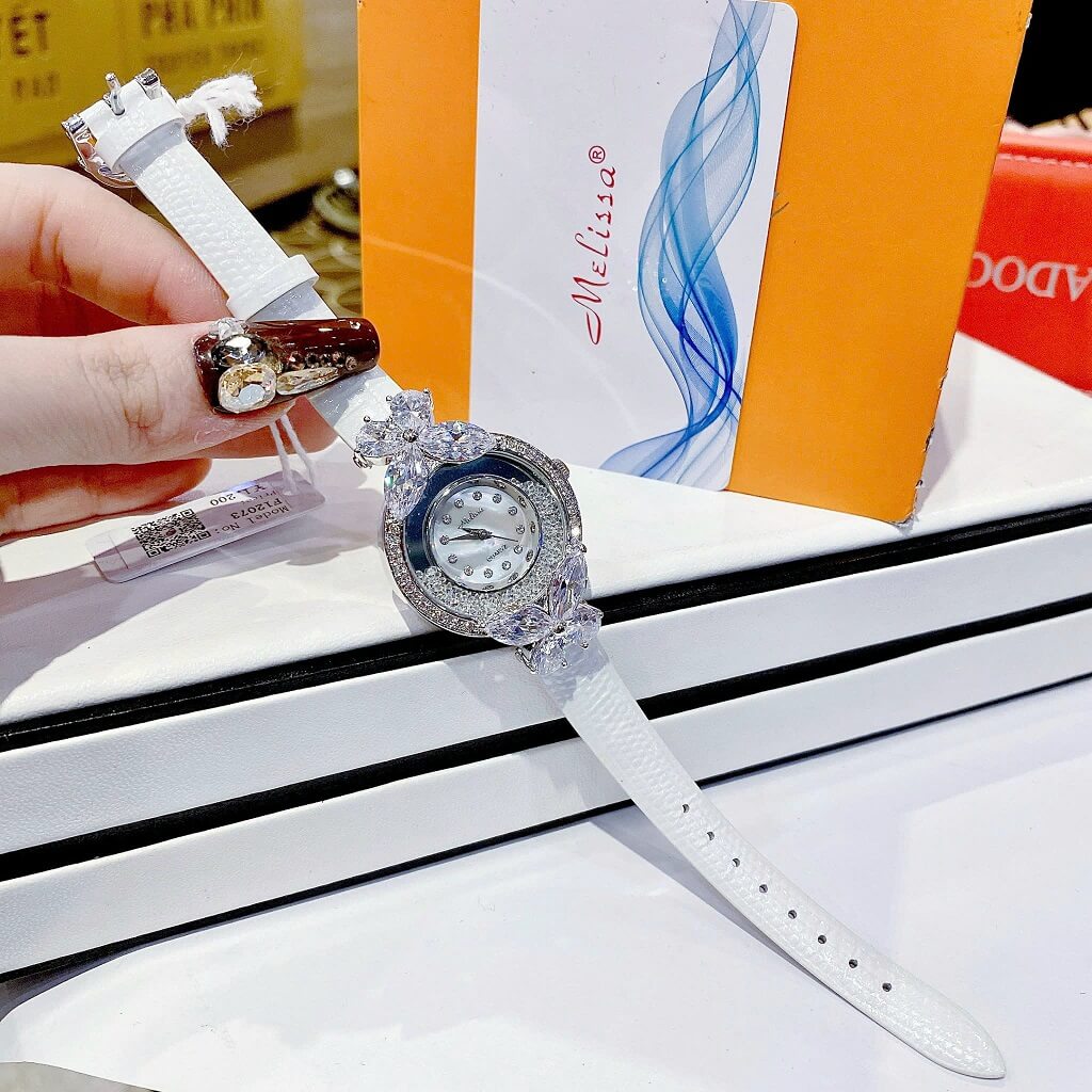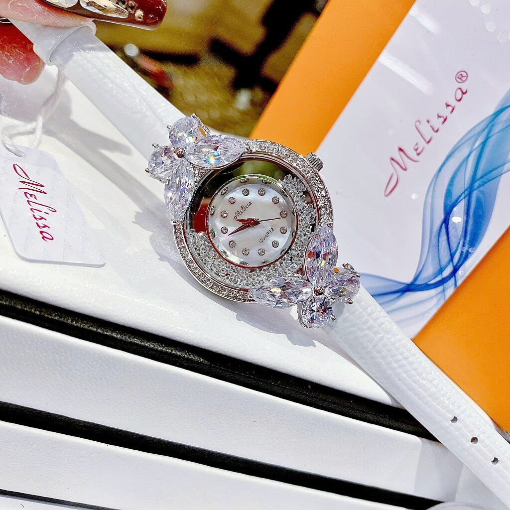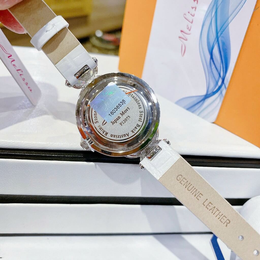 Đồng Hồ Nữ Melissa F12073 Dây Da Trắng Silver 30mm chính hãng