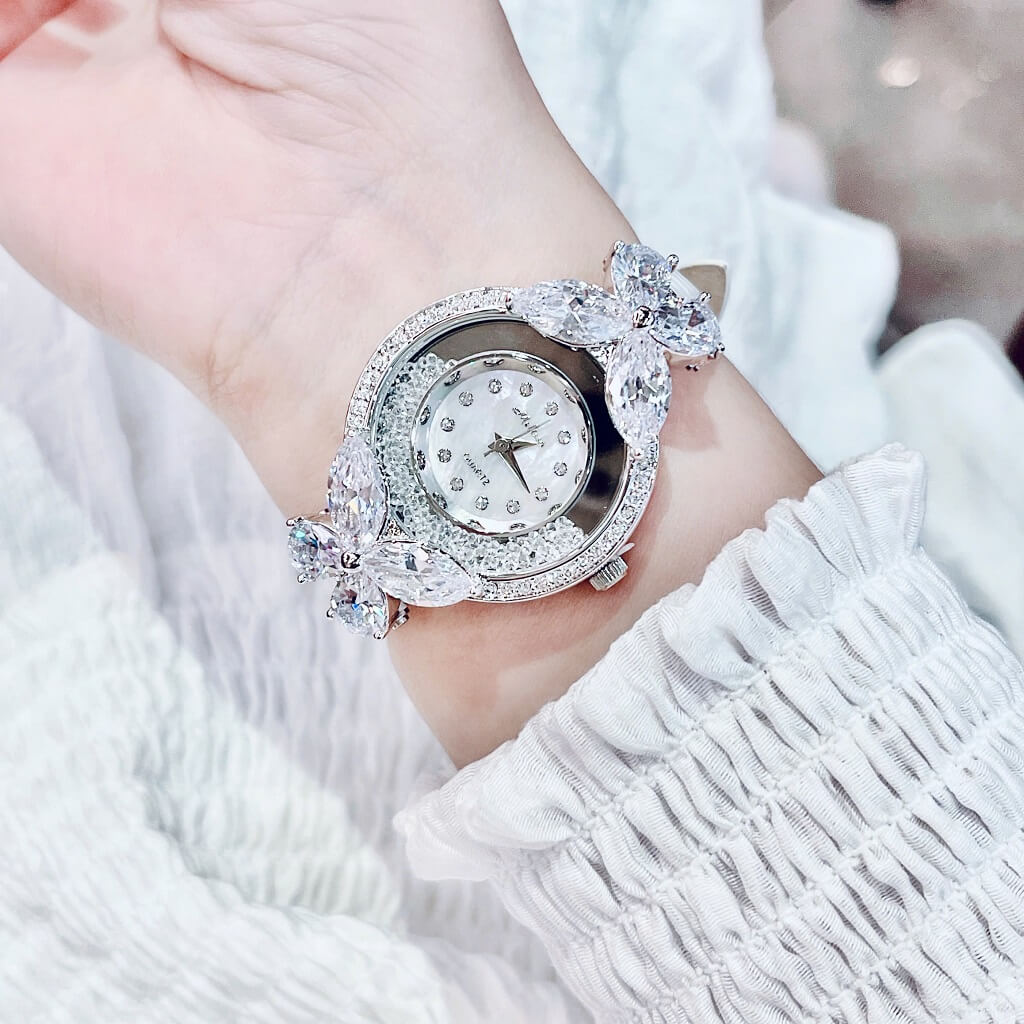 Hoạ tiết con bướm xinh hai bên làm nổi bật chiếc đồng hồ. Bạn muốn mua 1 được 2 vừa đồng hồ xinh vừa giống vòng tay sang chảnh thì không nên bỏ qua em này.