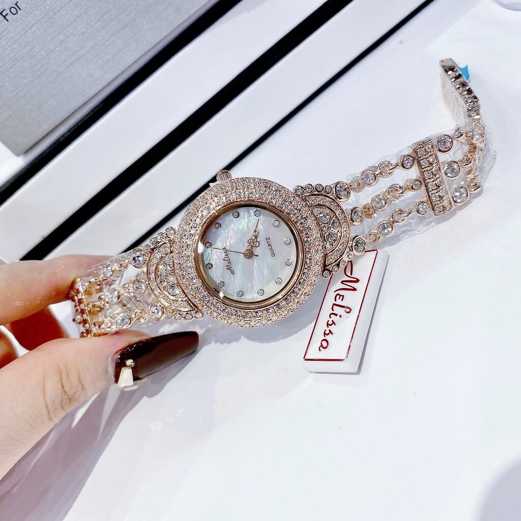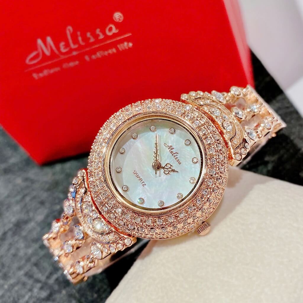 - Sản phẩm Đồng Hồ Nữ Melissa F6627 Kiểu Lắc Tay Rose Gold 33mm Chính Hãng bao gồm đầy đủ phụ kiện: Hộp + Túi + Thẻ bảo hành