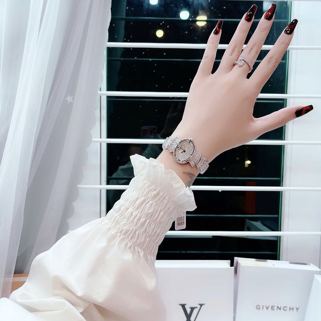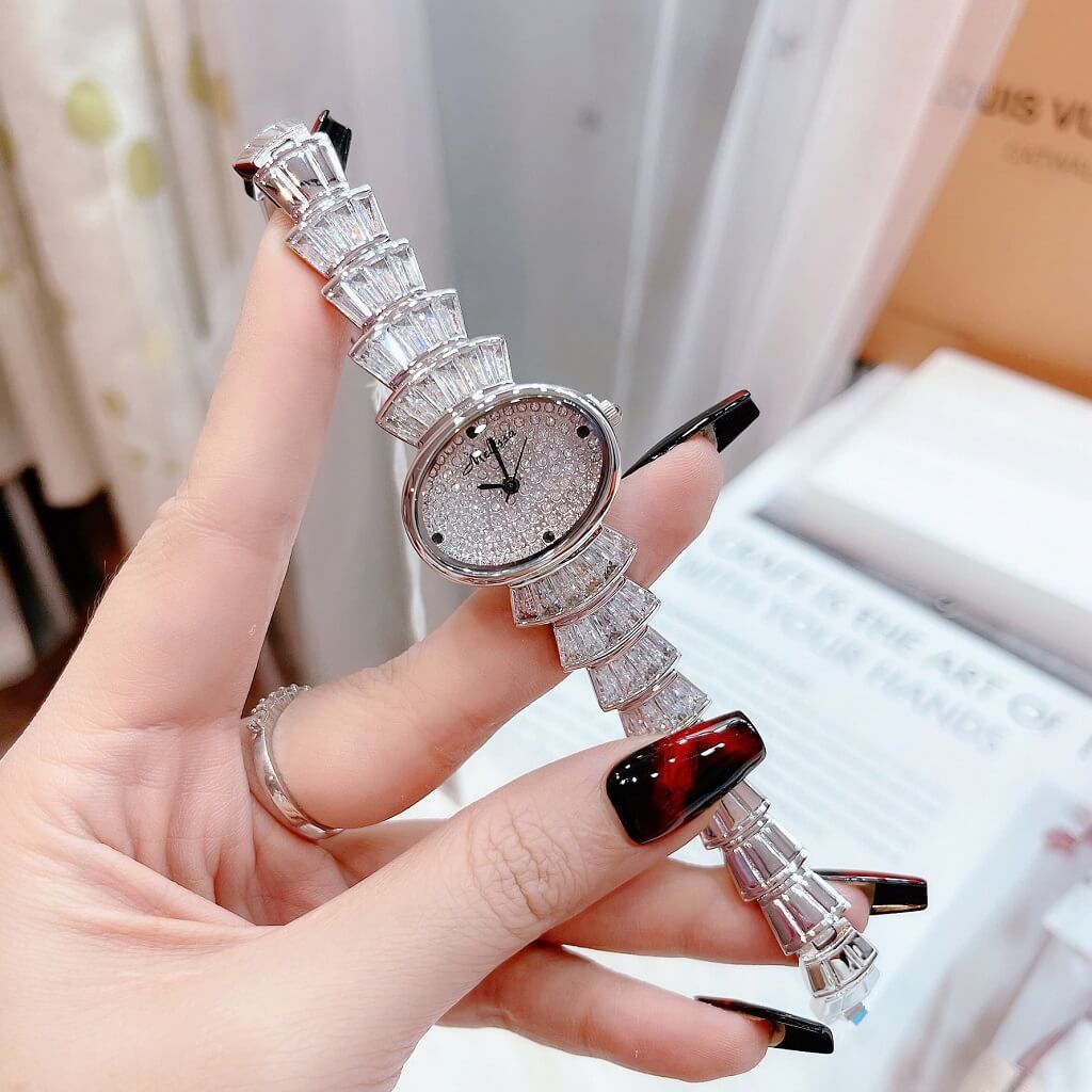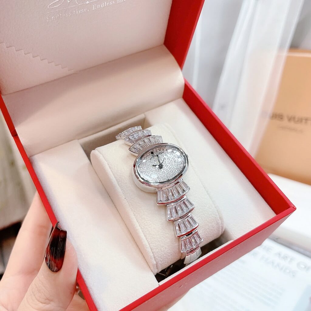 - Chất liệu vỏ: Thép không gỉ 316L, đá swarovski