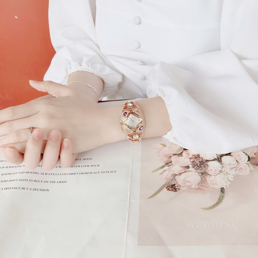 Chạm khắc đá cực kì tinh tế. Thiết kế như chiếc vòng tay dễ phối đồ. Full đá swarovski siêu lấp lánh