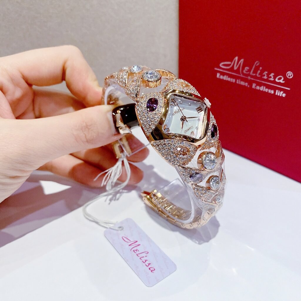 - Sản phẩm Đồng Hồ Nữ Melissa F8016 Đính Đá Màu Rose Gold 38mm Chính Hãng bao gồm đầy đủ phụ kiện: Hộp + Túi + Thẻ bảo hành