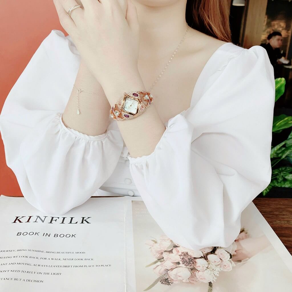 - Chất liệu vỏ: Thép không rỉ, đá swarovski