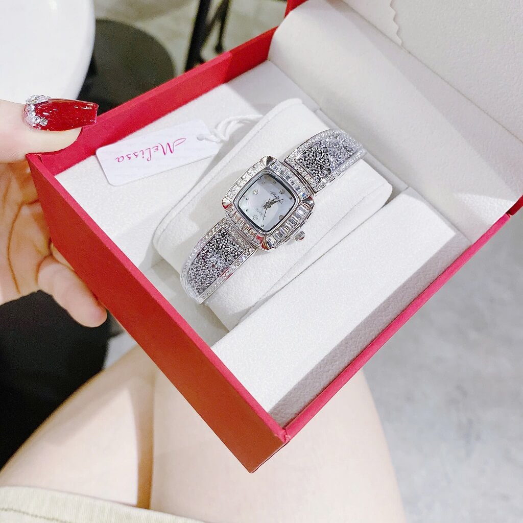 - Sản phẩm Đồng Hồ Nữ Melissa F8099 Kiểu Lắc Tay Silver Black 24mm Chính Hãng bao gồm đầy đủ phụ kiện: Hộp + Túi + Thẻ bảo hành