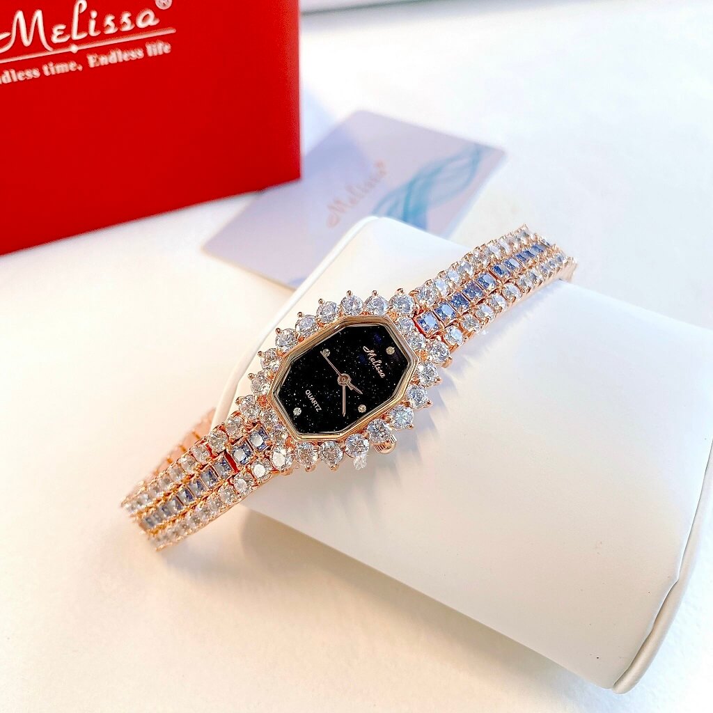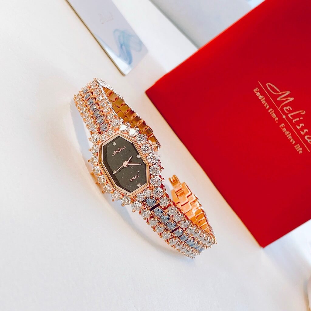 1/ THÔNG SỐ: Đồng Hồ Nữ Melissa F8240 Đính Đá Vỏ Rose Black 28mm chính hãng