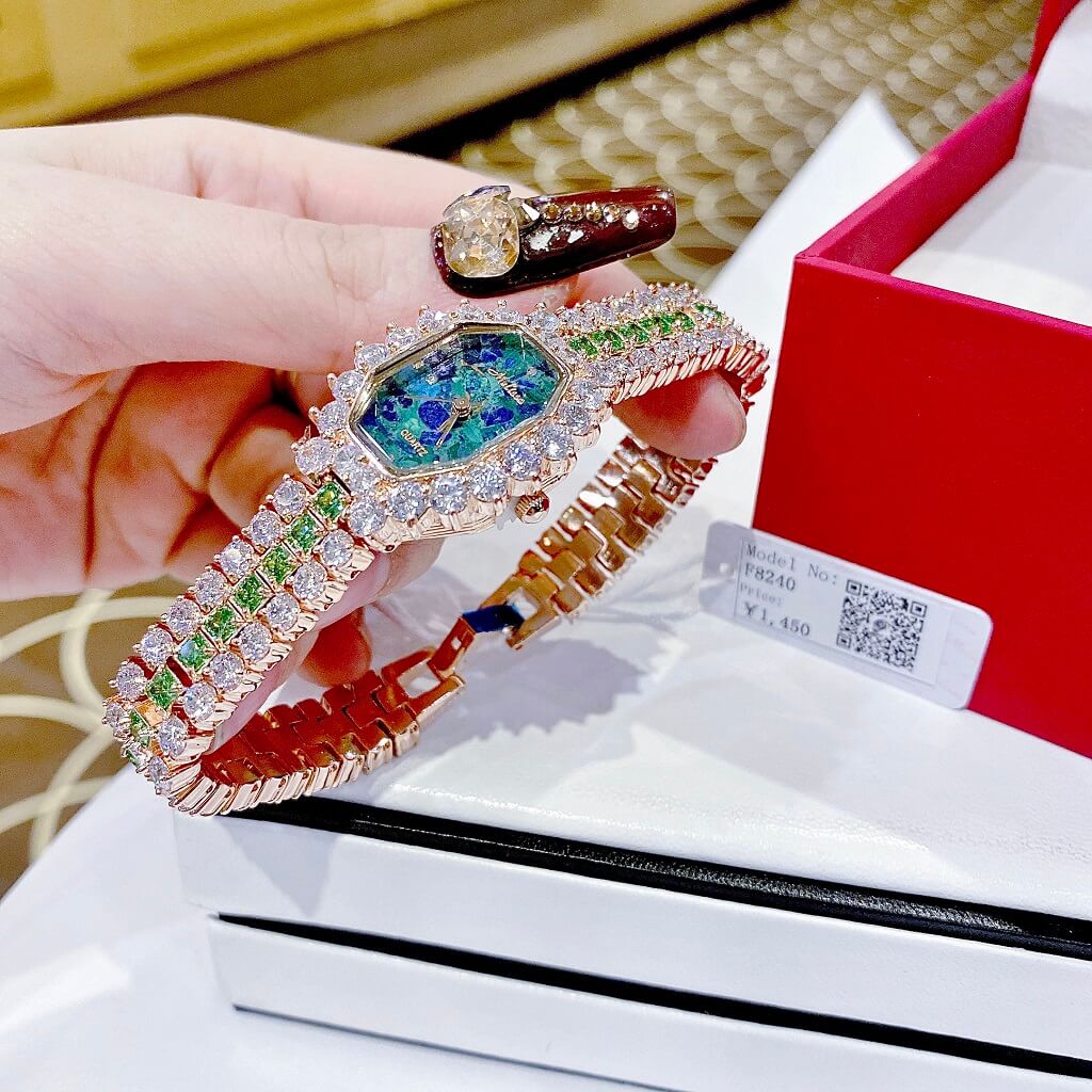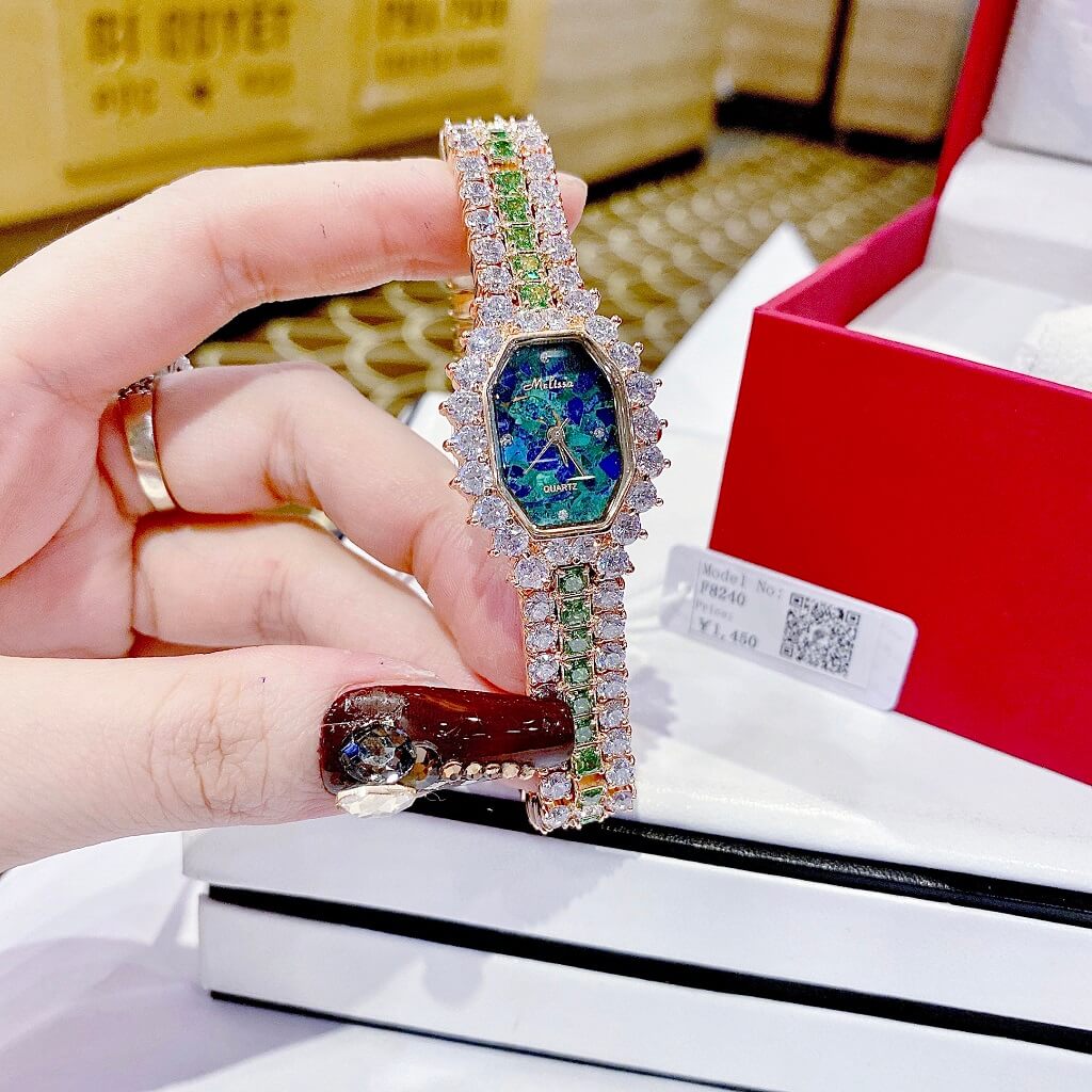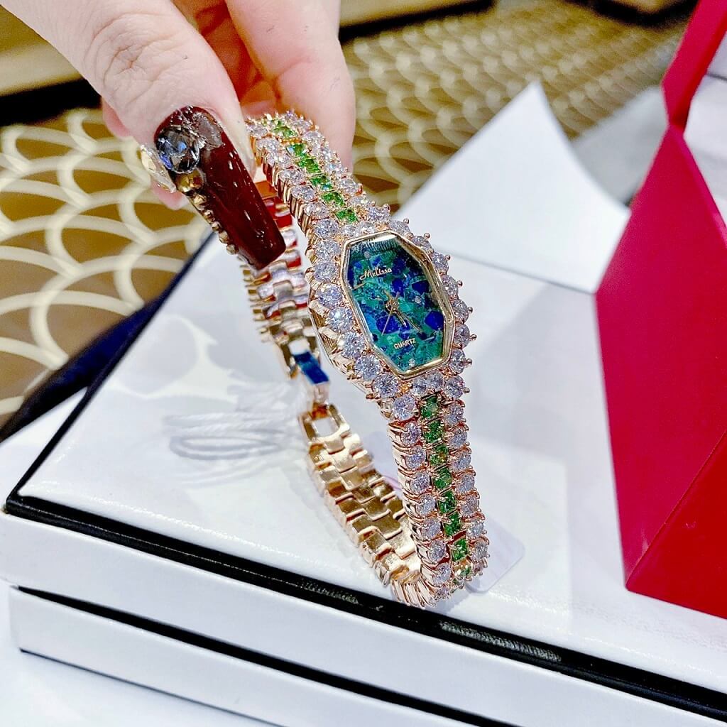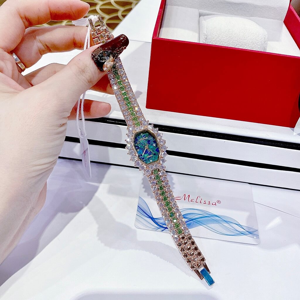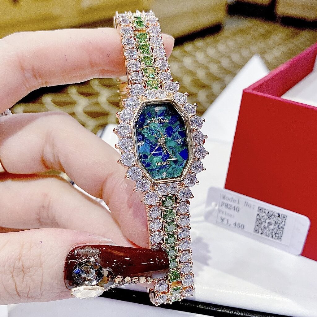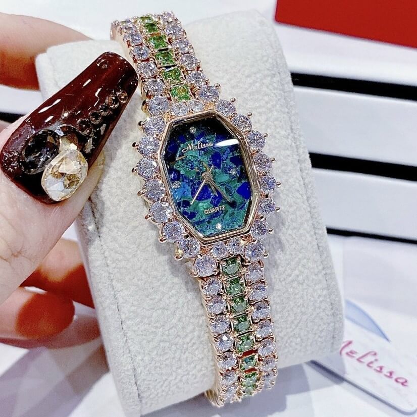 Đồng Hồ Nữ Melissa F8240 Đính Đá Vỏ Rose Green 28mm chính hãng máy Nhật