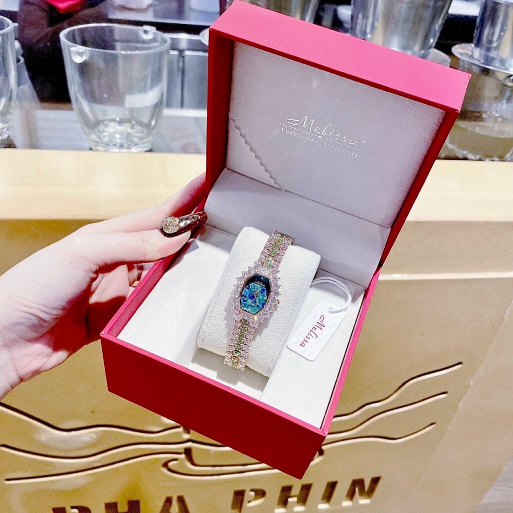 1/ THÔNG SỐ: Đồng Hồ Nữ Melissa F8240 Đính Đá Vỏ Rose Green 28mm chính hãng