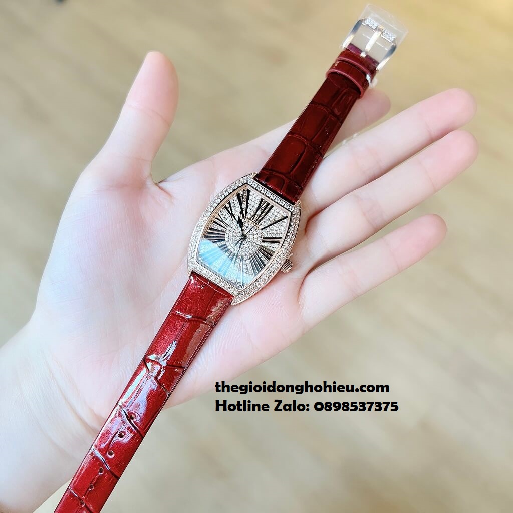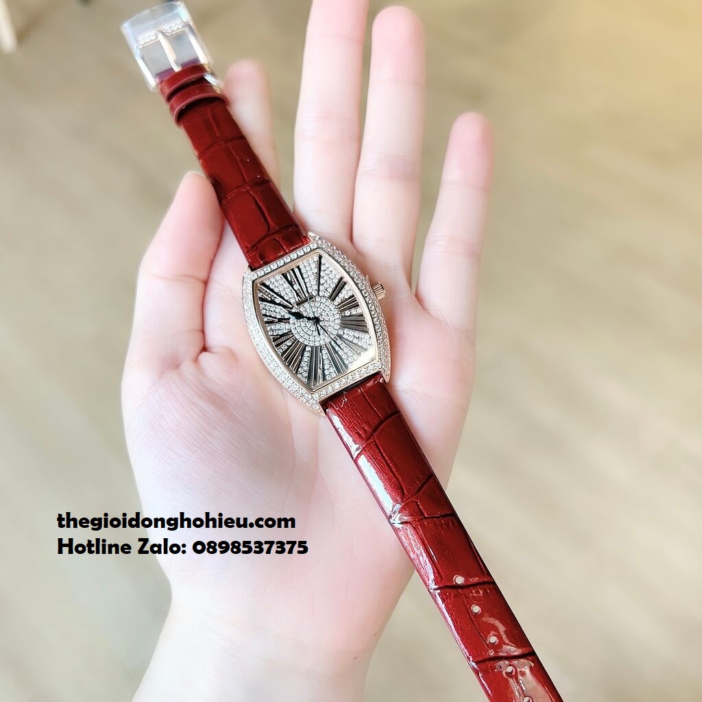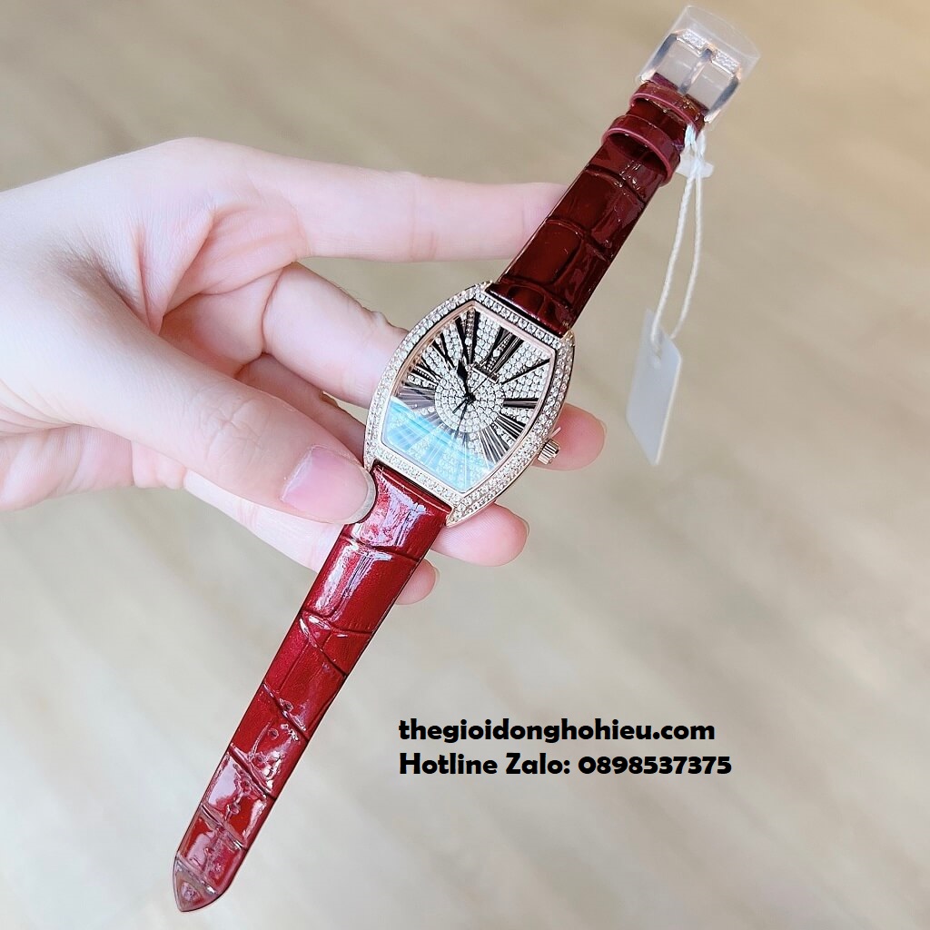 - Thiết kế mặt chữ nhật vòm cong với công nghệ đính đá đặc trưng của hãng, full đá sáng long lanh