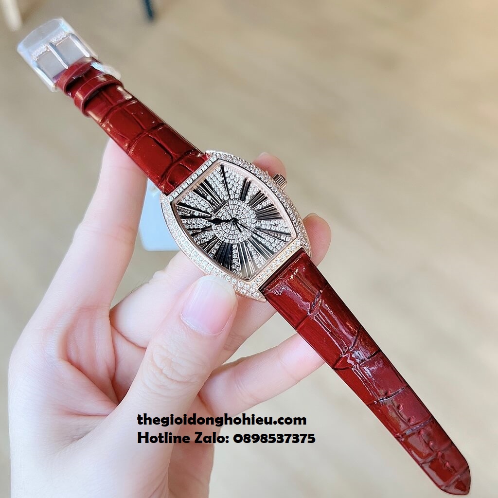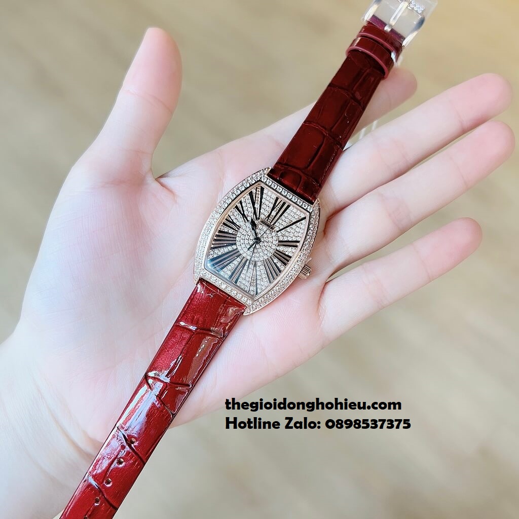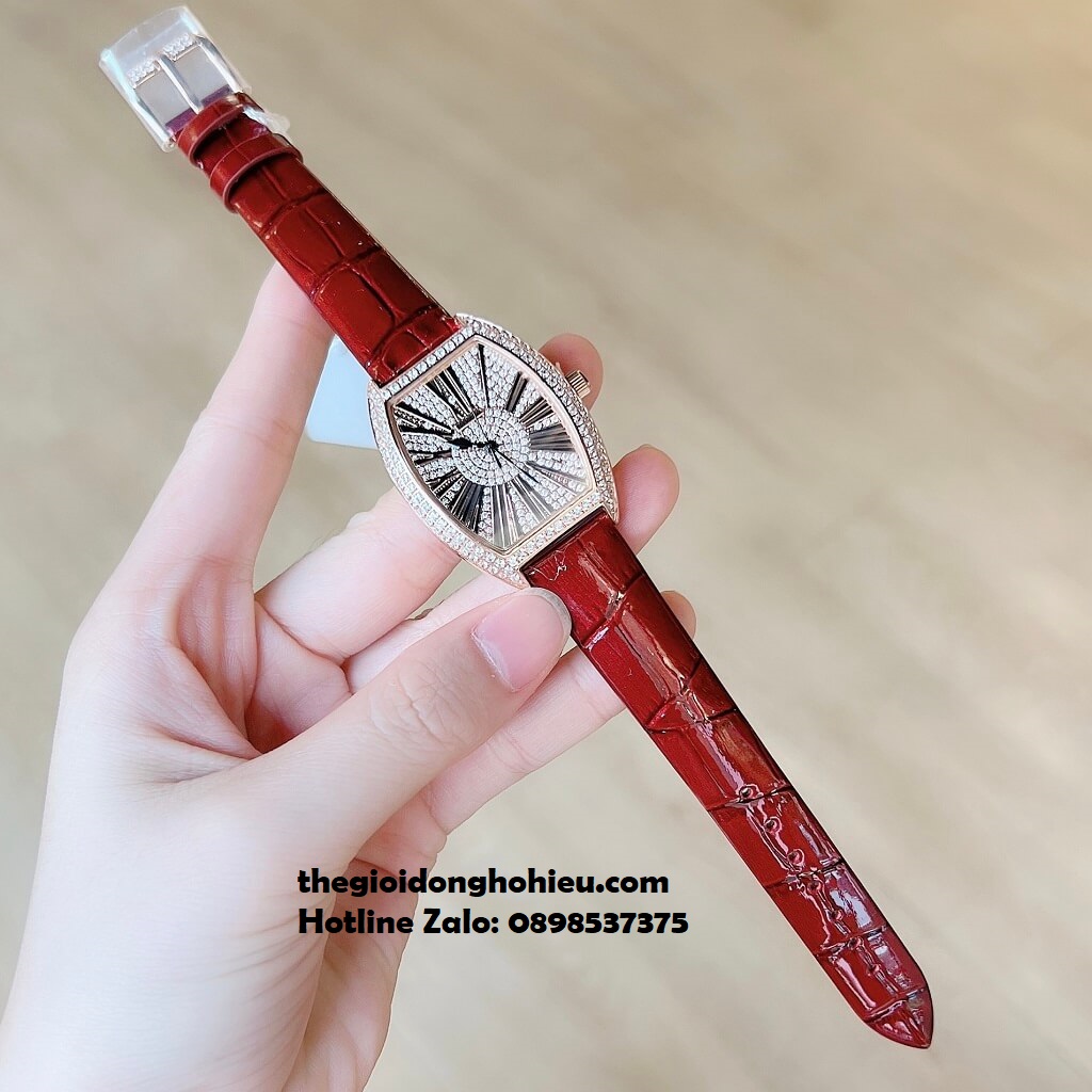 - Thiết kế mặt chữ nhật vòm cong với công nghệ đính đá đặc trưng của hãng, full đá sáng long lanh