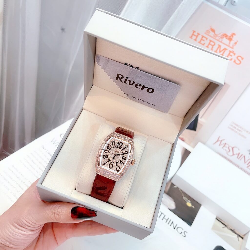 Đồng Hồ Nữ Rivero R9006 Dây Da Đỏ Vỏ Rose Gold 32mm Chính Hãng là một mẫu đồng hồ sang trọng và thời thượng dành cho phái đẹp. Dưới đây là một số đặc điểm nổi bật của sản phẩm này: