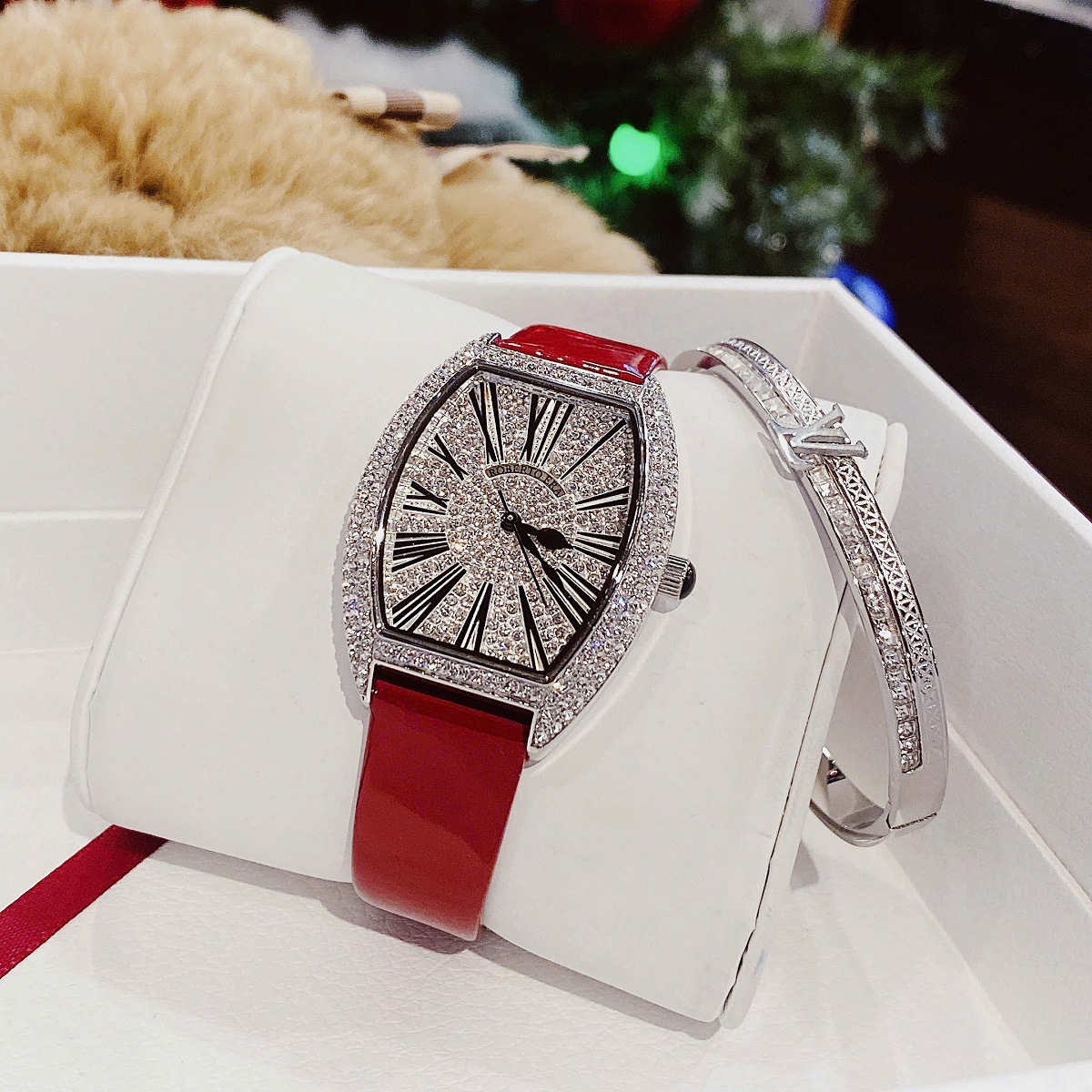 Set đồng hồ kèm theo vòng tay đính đá lên tay nhìn dễ thương và quá đỗi thời trang các nàng ạ!!!
