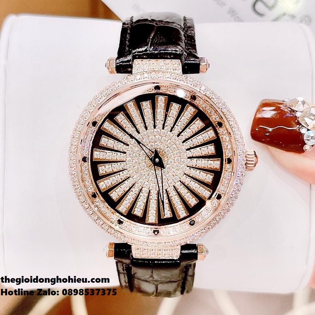 - Toàn bộ phần mặt đồng hồ được thiết kế full đá cực kỳ sáng