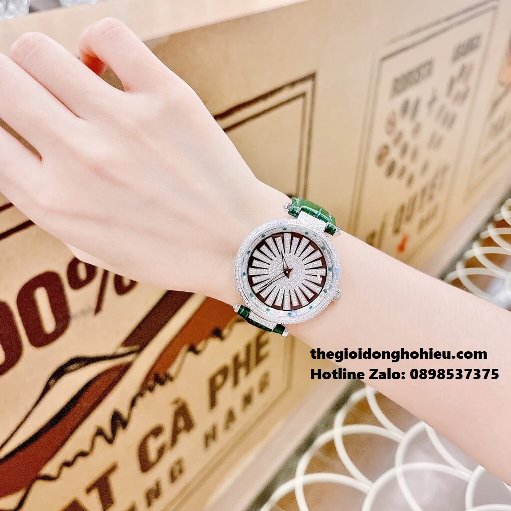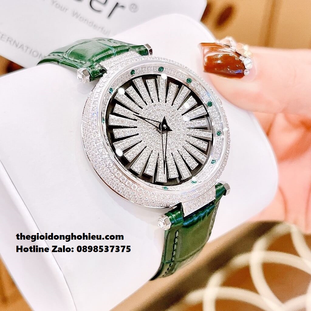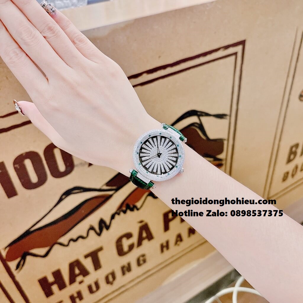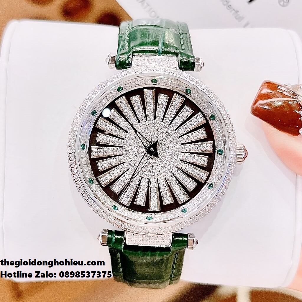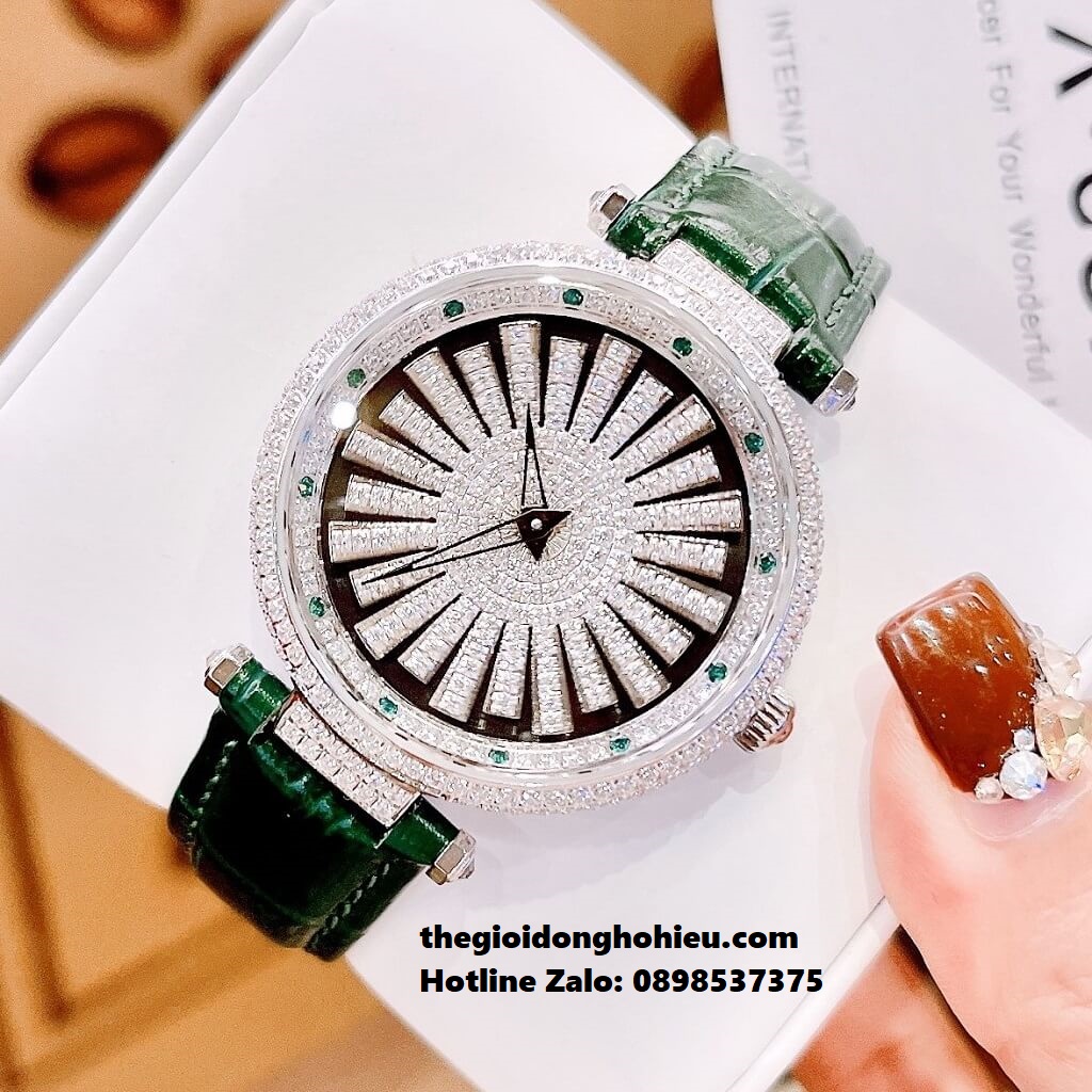 - Toàn bộ phần mặt đồng hồ được thiết kế full đá cực kỳ sáng