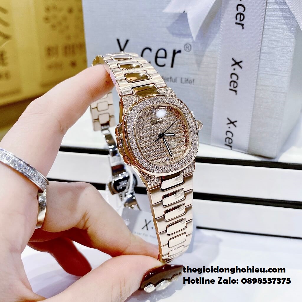 ♥️ Đồng hồ X-cer dây inox đính đá chính hãng nữ mang dáng dấp Patek tiền tỷ