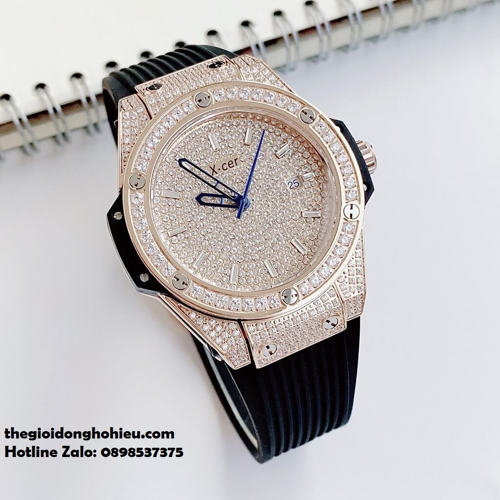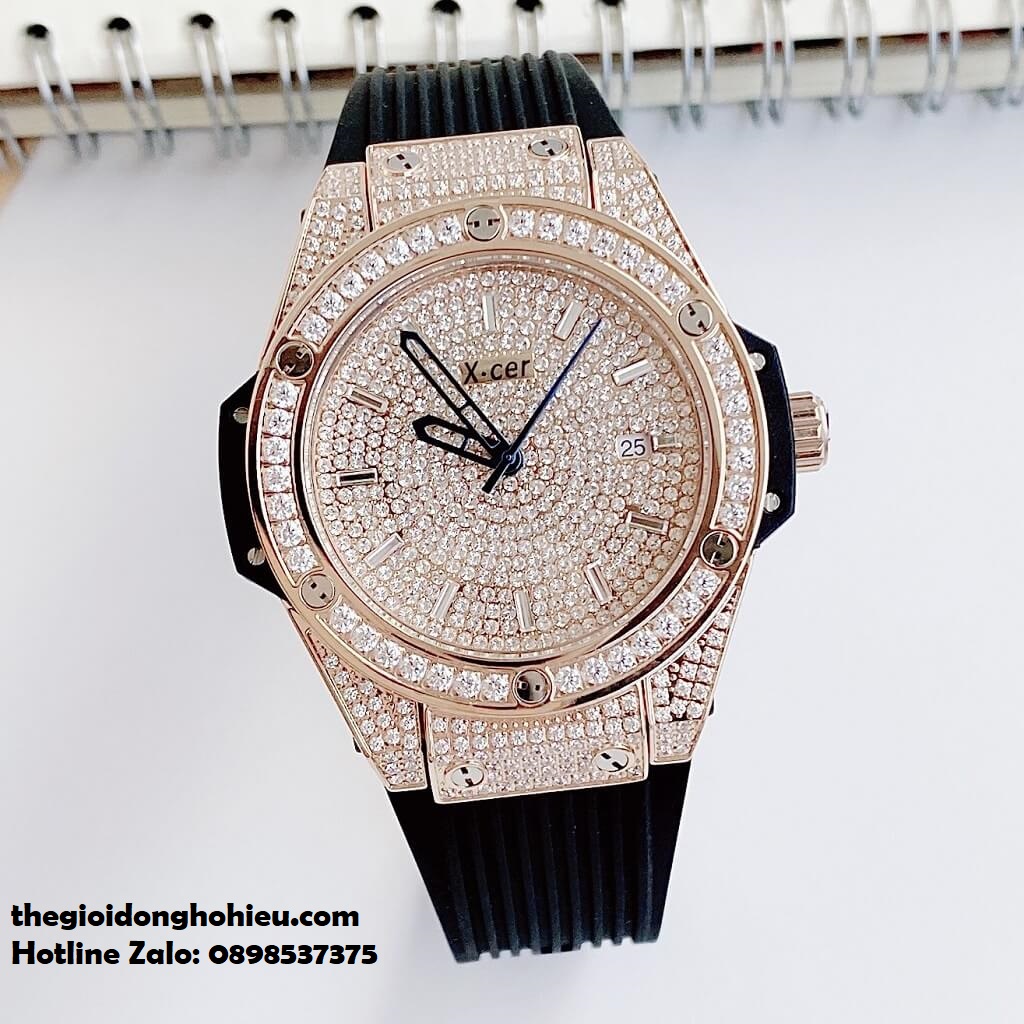 - Toàn bộ phần mặt đồng hồ được thiết kế full đá cực kỳ sáng, gắn chấu chắc chắn đeo không bao giờ lo rơi rụng