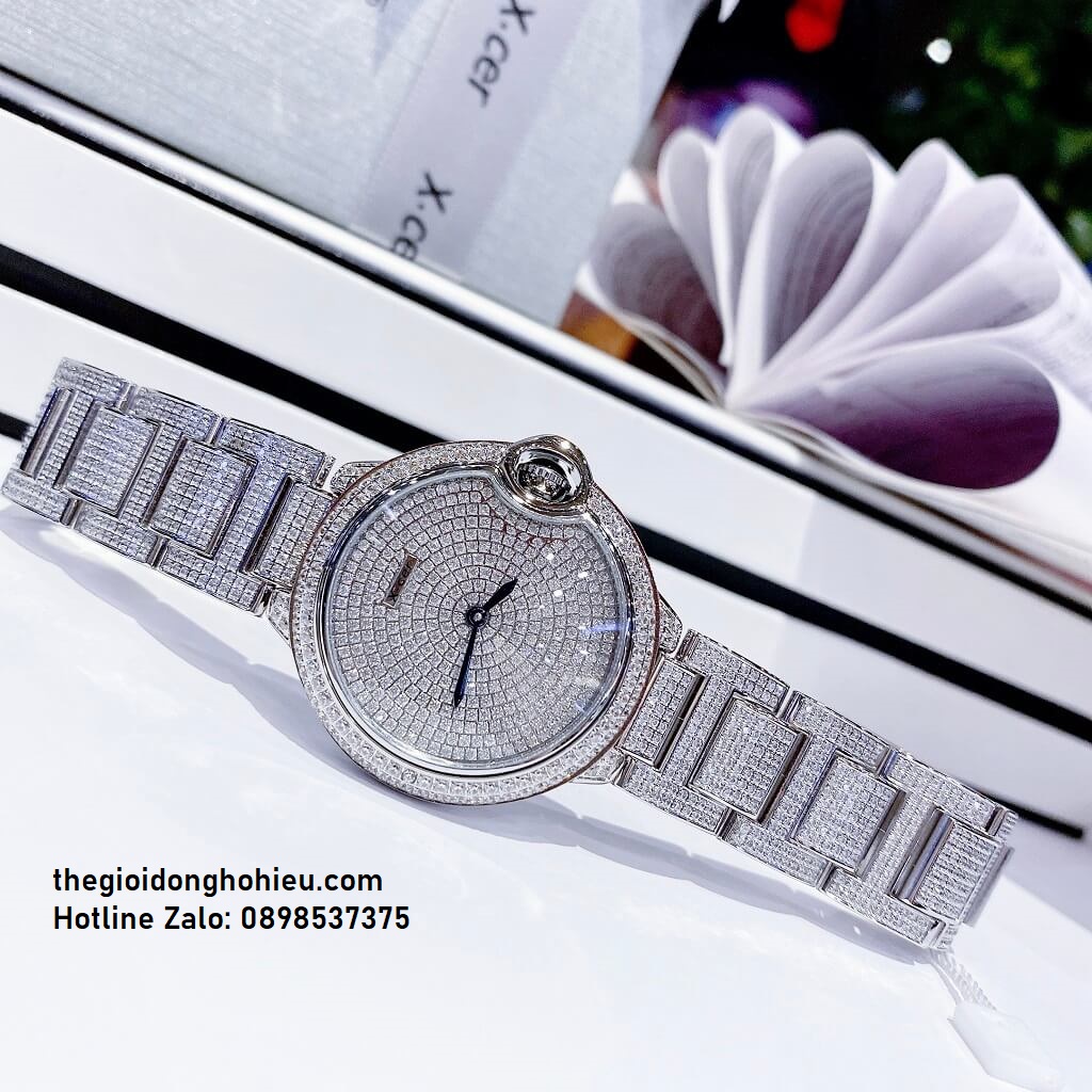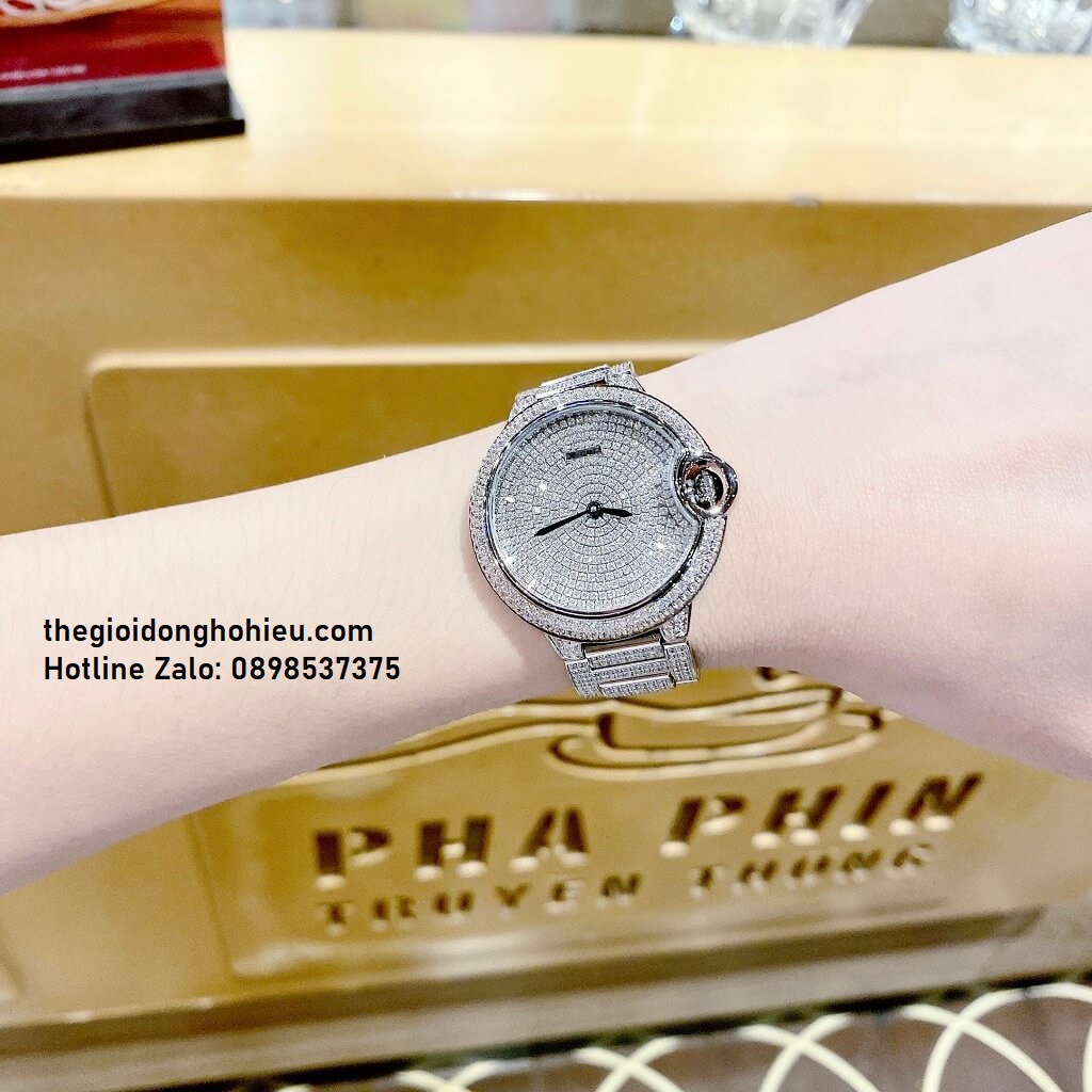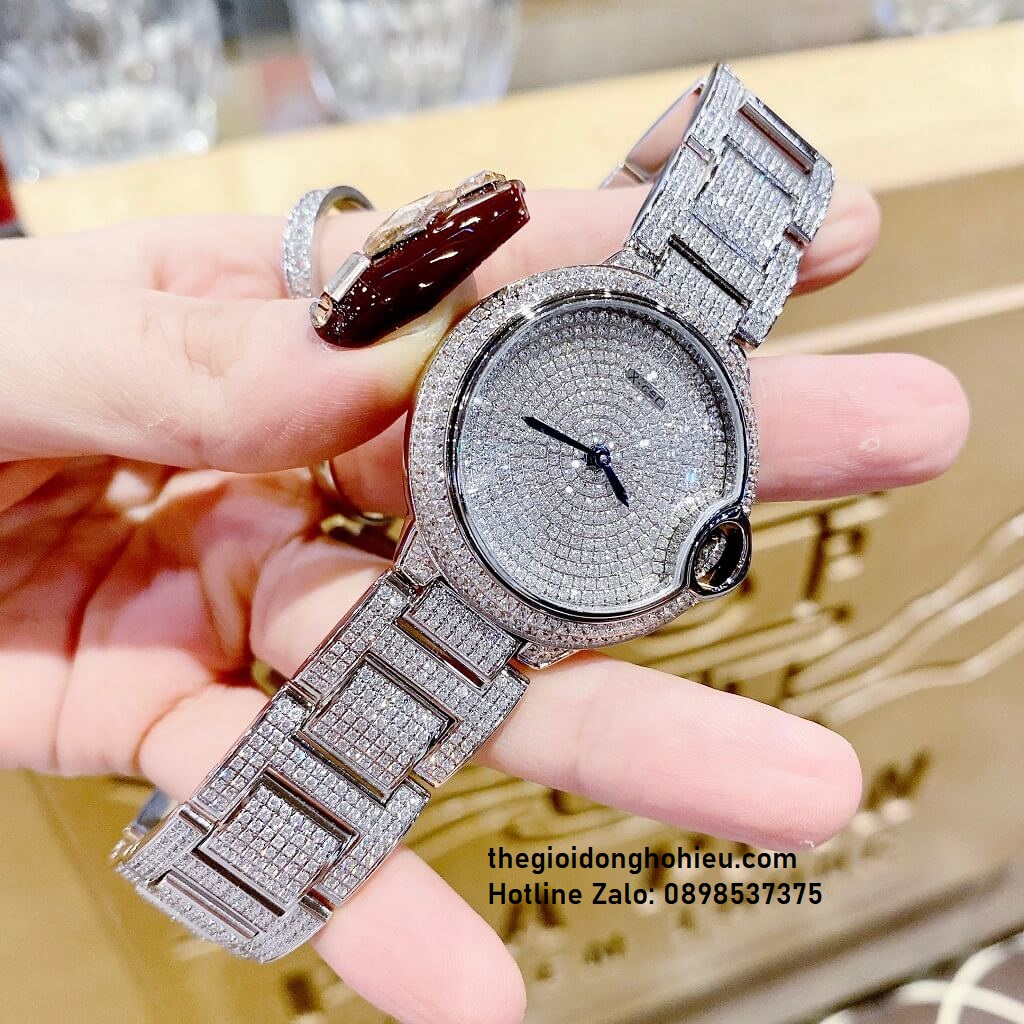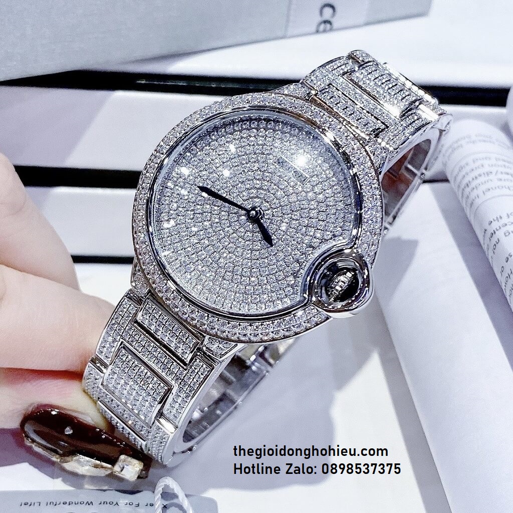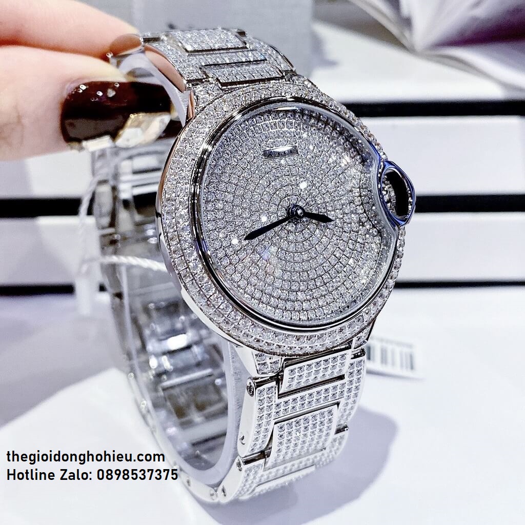 - Toàn bộ phần mặt và dây đồng hồ được thiết kế full đá chấu cực kỳ sáng bóng