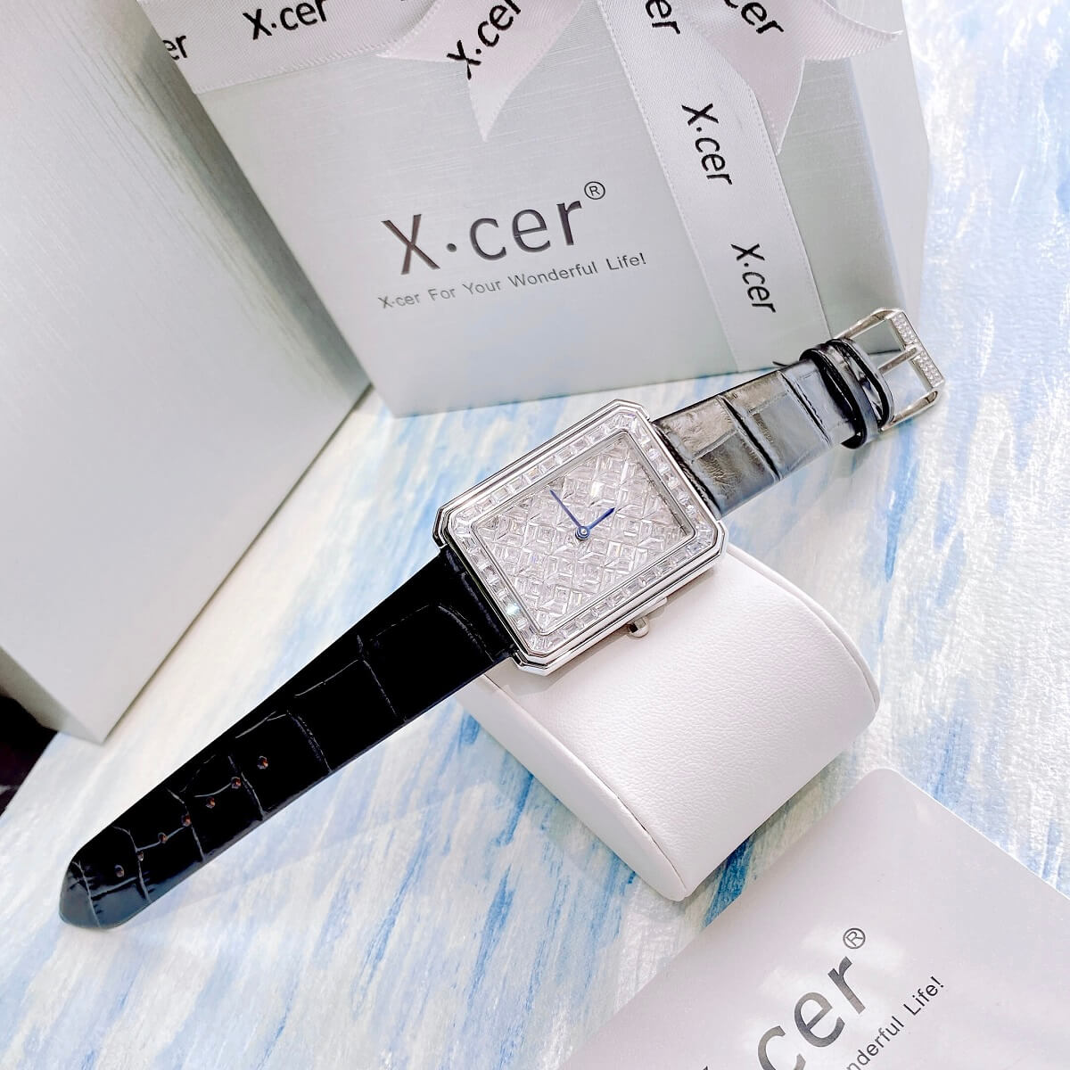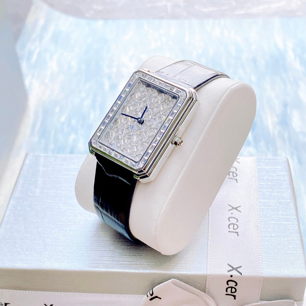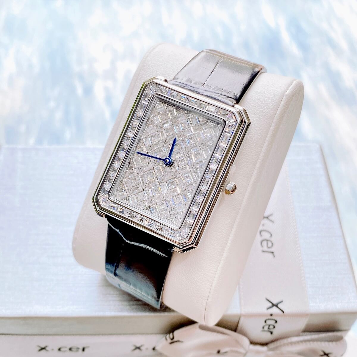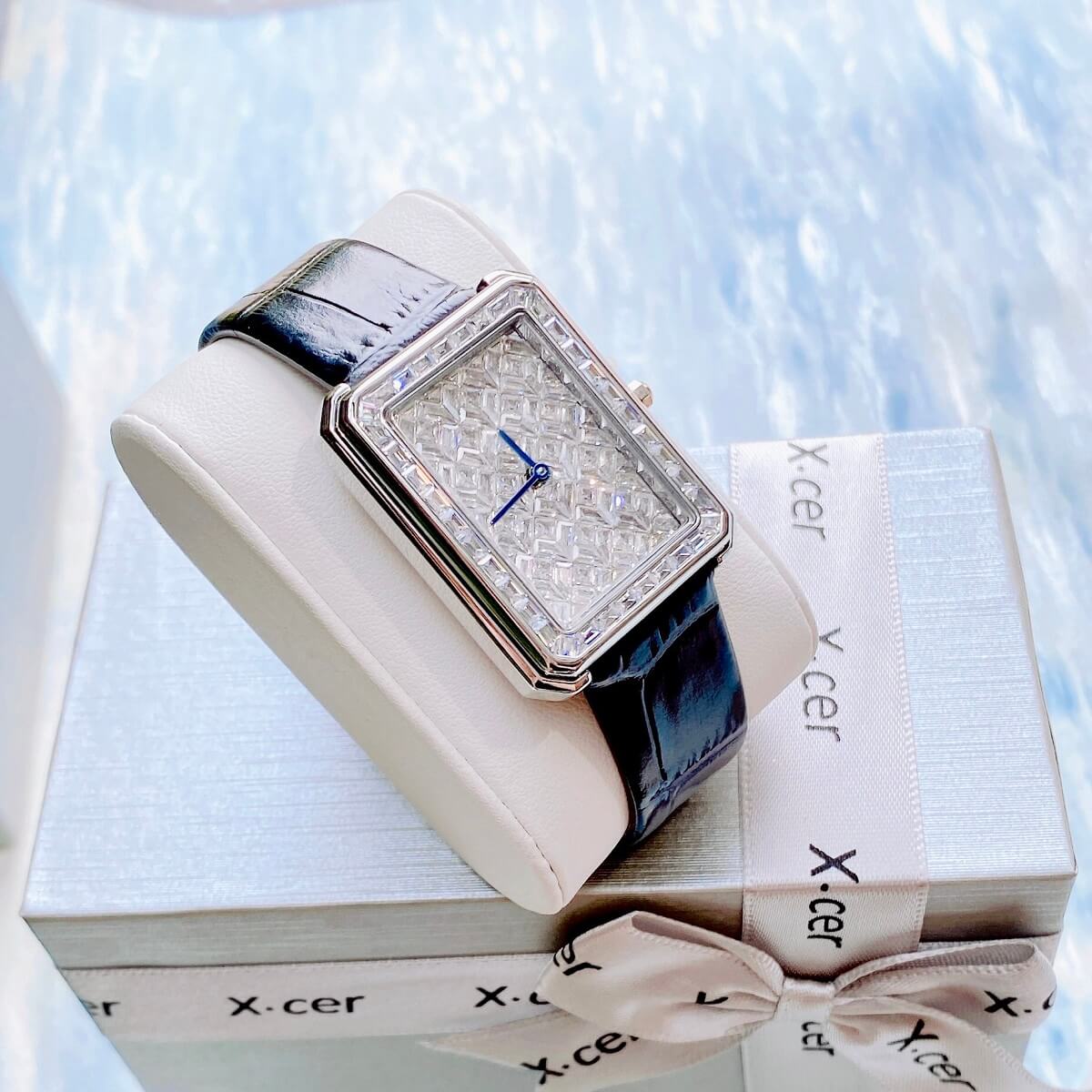 X-cer B0642 tuyệt đẹp mang phong cách cổ điển, case vuông nạm full diamond cắt vát cực đẹp