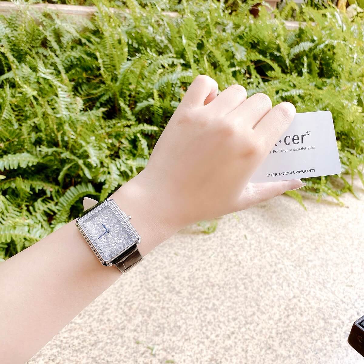 Công nghệ gắn đá chuẩn tiêu chuẩn quốc tế nên sản phẩm lên tay sang chảnh như Chanel. Dây da mềm mại đẹp ôm tay tôn da phái đẹp