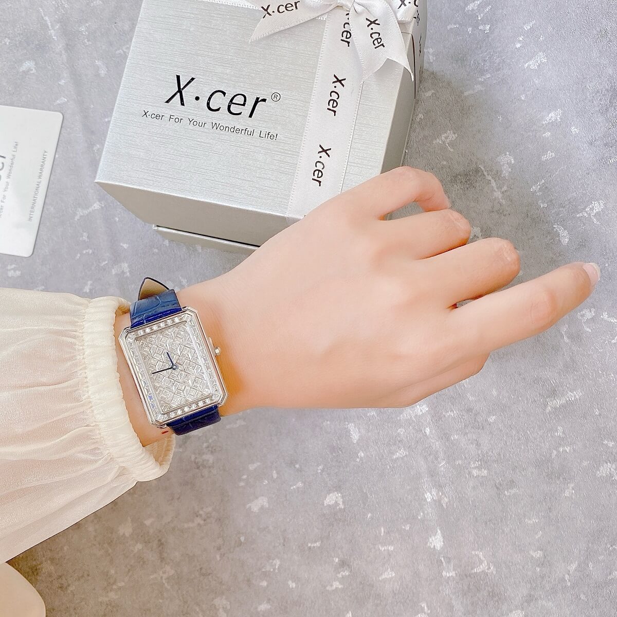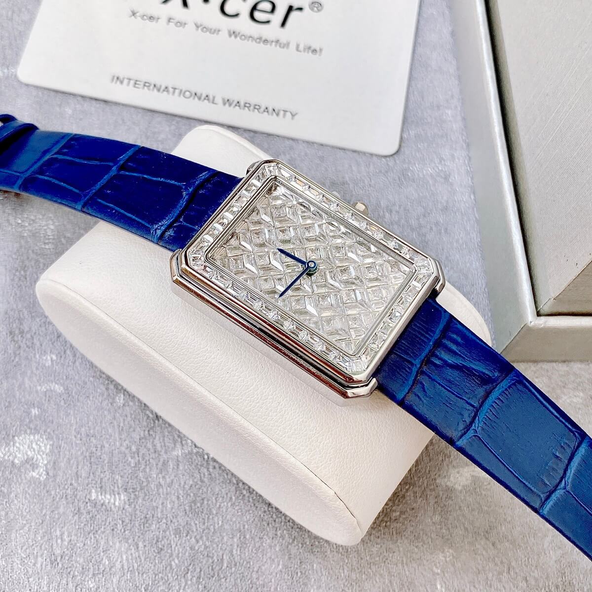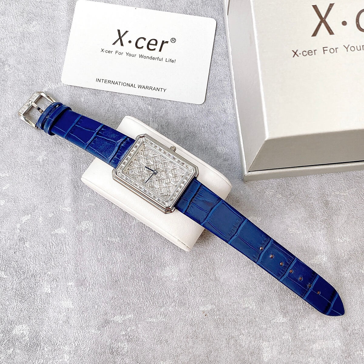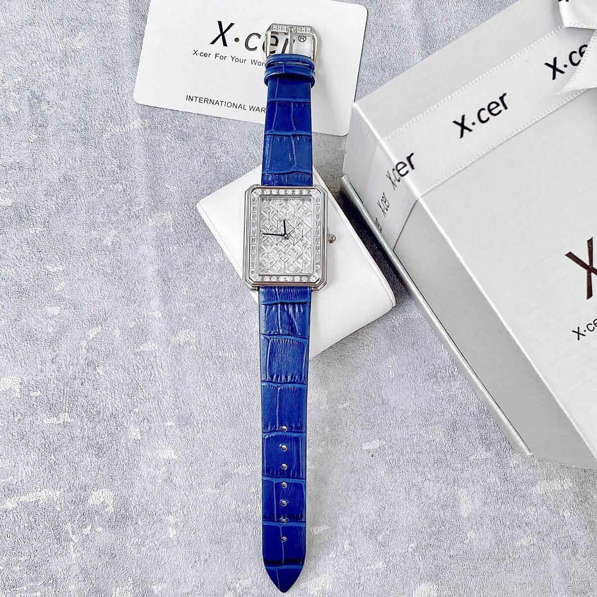 Đồng Hồ Nữ X-cer B0642 Dây Da Blue Silver 34mm chính hãng máy Nhật - Phong cách của những quý cô ghiền kim cương