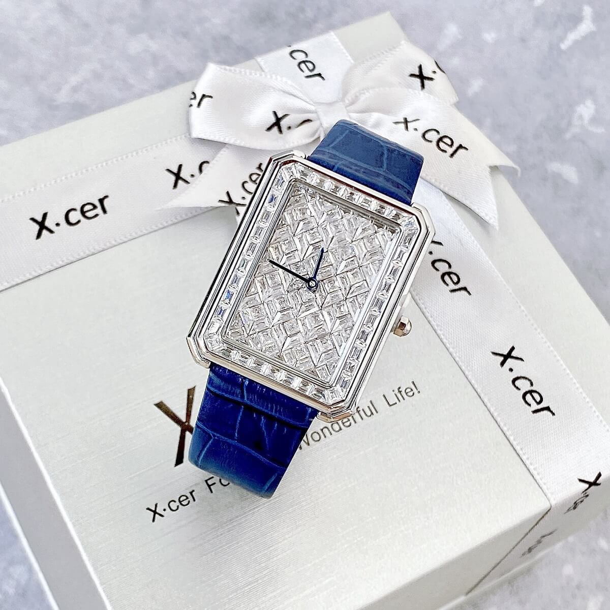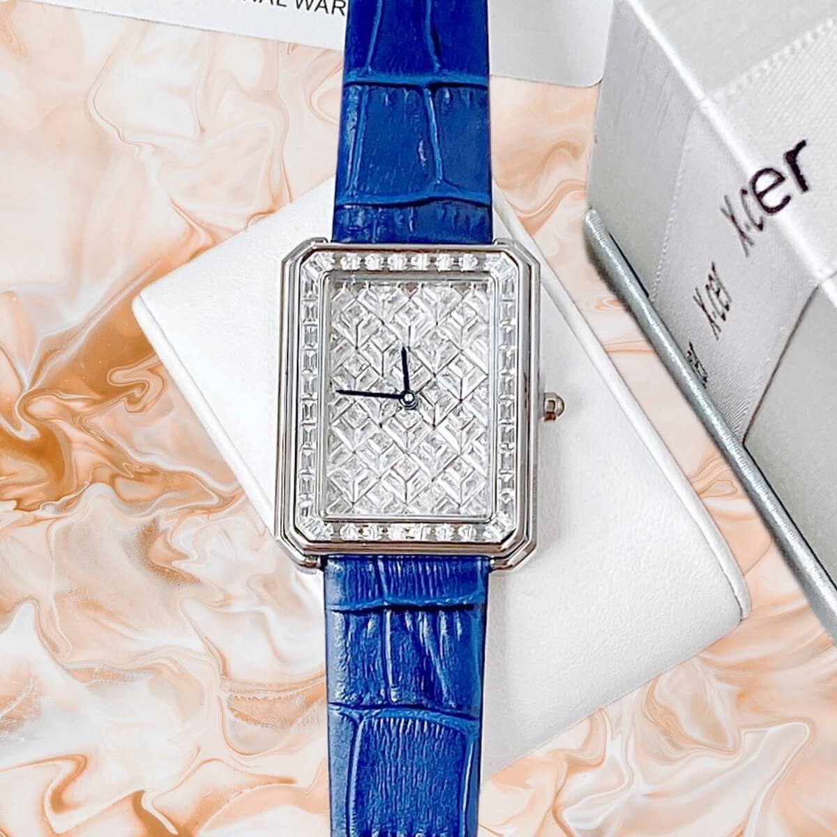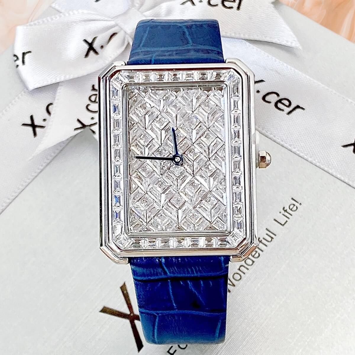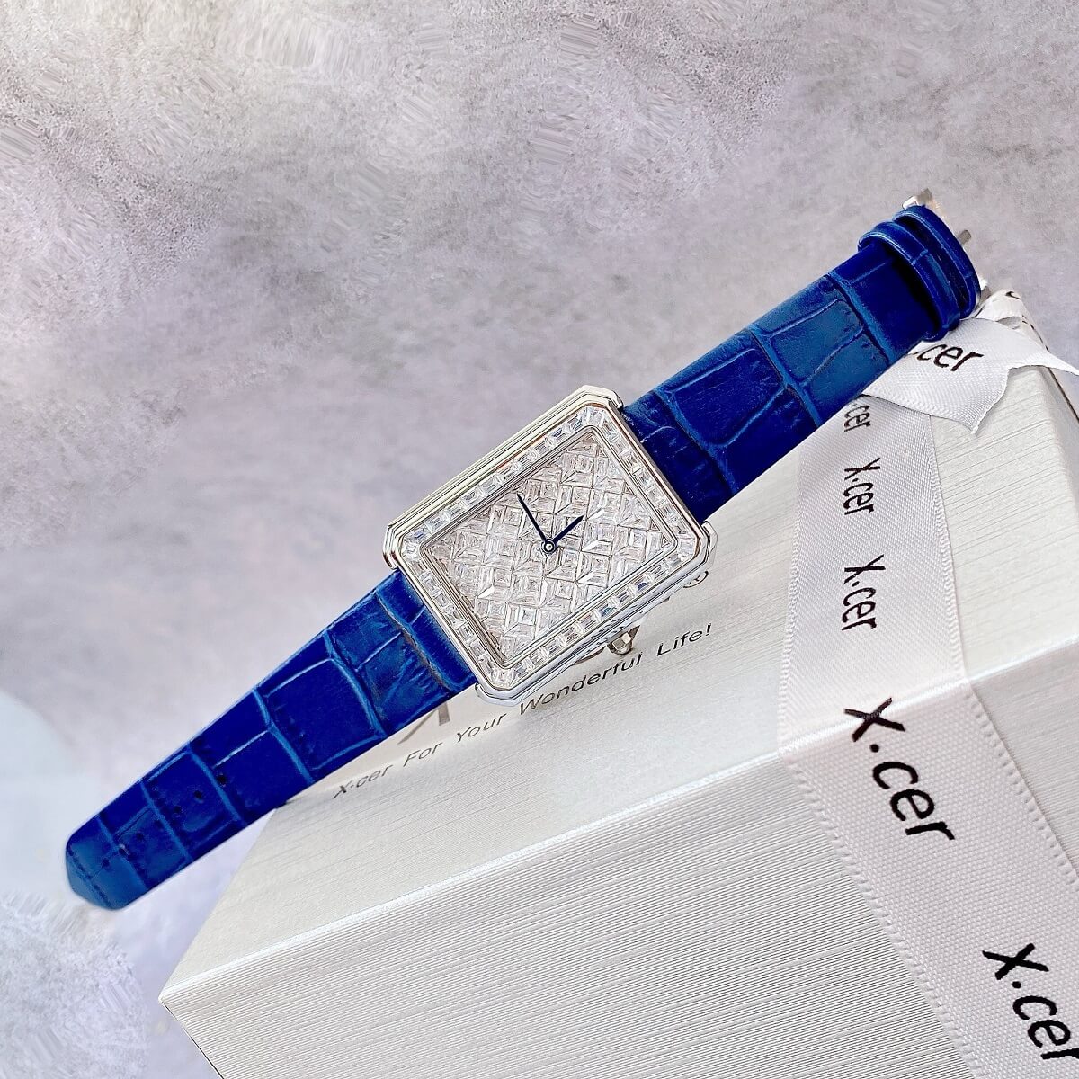 Đồng Hồ Nữ X-cer B0642 Dây Da Blue Silver 34mm chính hãng máy Nhật - Phong cách của những quý cô ghiền kim cương